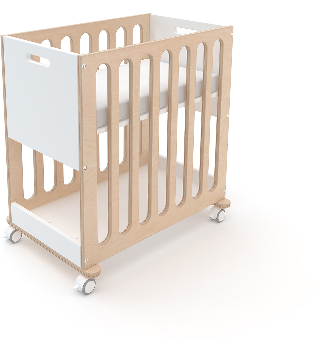 The Fawn crib and bassinet system starts as a bassinet on wheels and can be converted into a full sized crib. This modern, eco-friendly design is both practical and beautiful. Bassinet mattress sold with system, crib mattress sold separately. Safe: Meets all US, Canadian, Australian and European safety standards Smart Design: Easy to assemble; Bassinet mattress has one mattress position, crib has 3 mattress positions; Low overall height for easy access; Small footprint helps utilize space efficiently; Eco-friendly: Sustainably produced in Europe in an FSC certified facility; Made of Baltic birch plywood and eco-MDF; Finishes are non toxic, water-based and free of VOC health hazards; Made under European environmental standards; Packaging made of recycled cardboard; Responsible recycling through licensed collecting facilities; Adaptable: Bassinet converts to a crib (conversion kit included); Crib converts to toddler bed with conversion kit (sold separately); Crib has 3 adjustable mattress positions; Specifications: Bassinet dimensions (in): 29.5 L x 17.5 W x 32.75 H; Crib/toddler bed (in): 53.5 L x 29.5 W x 35.75 H; Includes bassinet mattress - crib mattress sold separately (crib mattress must be at least 27 1/4"W x 51 5/8"L and 4-6" thick);.