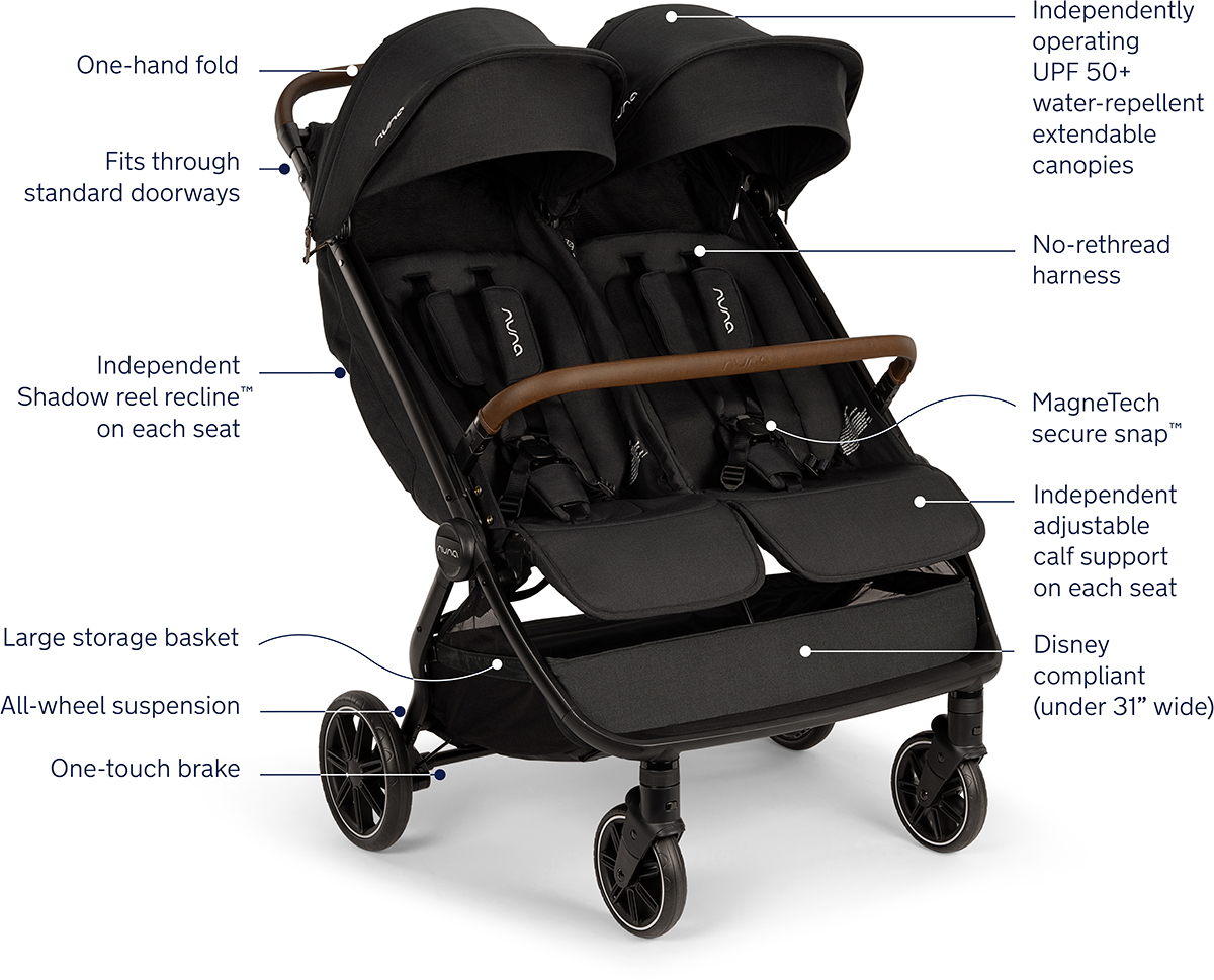 Buy Nuna TRVL dubl Lightweight Side by Side Double Stroller - Caviar for $850.00 at @ Albeebaby.com