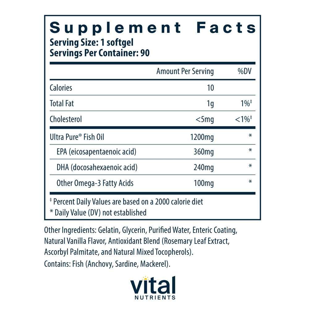 Buy Vital Nutrients Ultra Pure Fish Oil 700 Enteric TF - 90 Softgels for $55.99 at @ Beautifiedyou.com