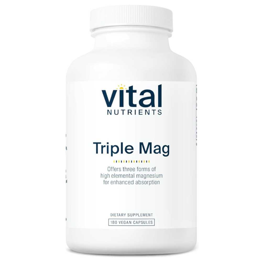 Vital Nutrients Triple Magnesium Complex is a highly bioavailable magnesium supplement designed to support muscle relaxation promote cardiovascular health and enhance overall well-being. This formula combines three forms of magnesiummagnesium citrate magnesium glycinate and magnesium malateensuring optimal absorption and effectiveness. It is ideal for individuals looking to maintain healthy magnesium levels support muscle function and reduce stress. Benefits: Muscle Relaxation : Promotes muscle relaxation and helps reduce muscle cramps and spasms. Cardiovascular Health : Supports heart health by maintaining healthy blood pressure levels and promoting normal heart rhythm. Stress Reduction : Helps reduce stress and anxiety by supporting the body's natural relaxation response. How to Use: Take 1 to 2 capsules daily preferably with meals or as directed by your healthcare provider. For best results take consistently at the same time each day. If you are pregnant nursing or taking any medications consult your healthcare professional before use.