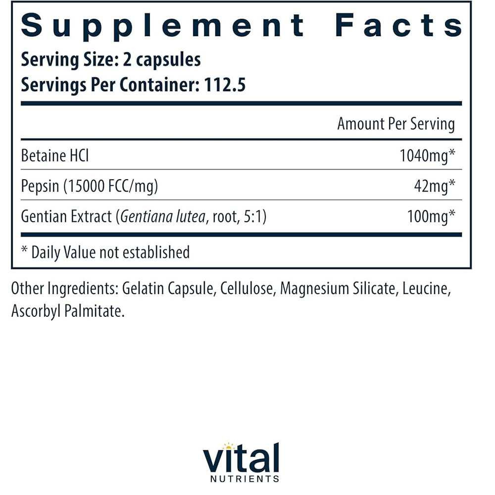 Buy Vital Nutrients Betaine HCl Pepsin - 225 Capsules for $36.99 at @ Beautifiedyou.com