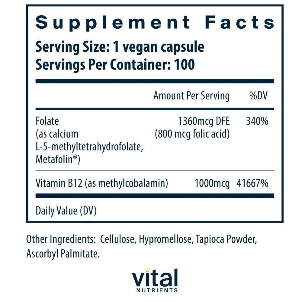 Buy Vital Nutrients B-12/Methyl Folate 1000mcg/800mcg - 100 Capsules for $29.99 at @ Beautifiedyou.com