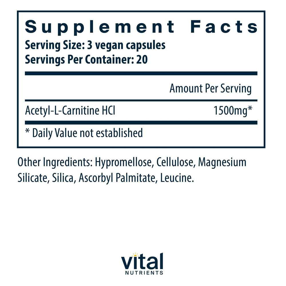 Buy Vital Nutrients Acetyl L-Carnitine - 60 Capsules for $33.99 at @ Beautifiedyou.com
