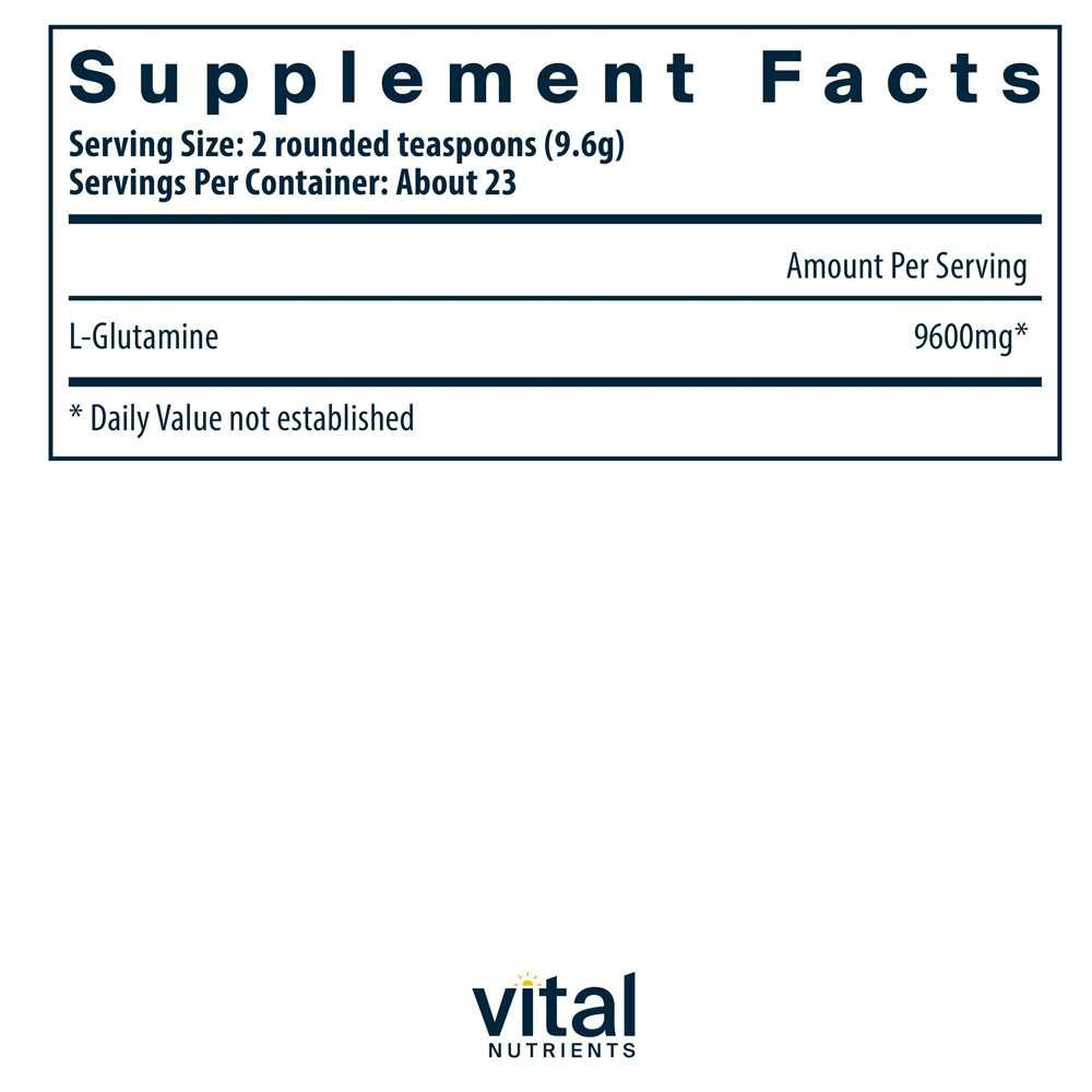 Vital Nutrients Glutamine is a high-potency supplement designed to support gut health muscle recovery and overall immune function. L-glutamine is an essential amino acid that plays a vital role in maintaining the integrity of the gastrointestinal tract promoting muscle repair and supporting the immune system. This supplement is ideal for individuals seeking to enhance their digestive health improve recovery after exercise and support overall wellness. Benefits: Gut Health Support : Helps maintain the integrity of the intestinal lining promoting healthy digestion and preventing leaky gut syndrome. Muscle Recovery : Supports muscle repair and recovery after intense physical activity reducing muscle soreness and fatigue. Immune Function : Strengthens the immune system by providing critical support to the bodys natural defense mechanisms. How to Use: Take 1 to 2 capsules daily preferably with meals or as directed by your healthcare provider. For best results take consistently at the same time each day. If you are pregnant nursing or taking any medications consult your healthcare professional before use.