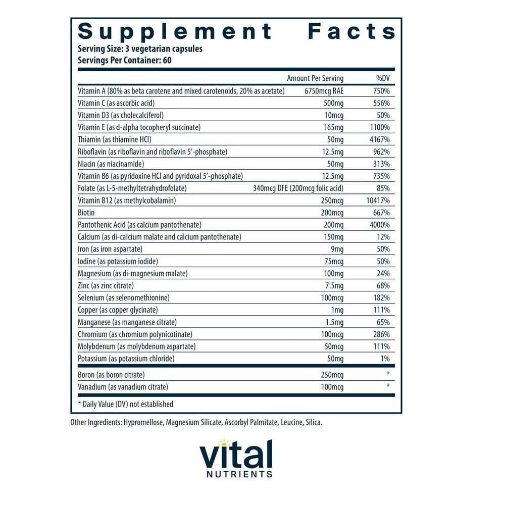 Vital Nutrients Multi-Nutrients with Iron and Iodine - 180 Capsules