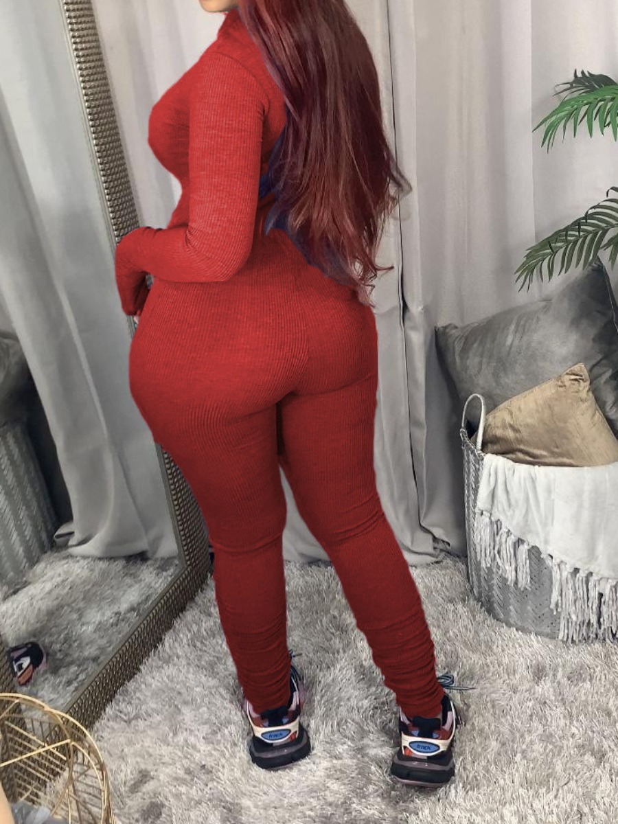 LW BASICS Zipper Design Solid Color Jumpsuit.