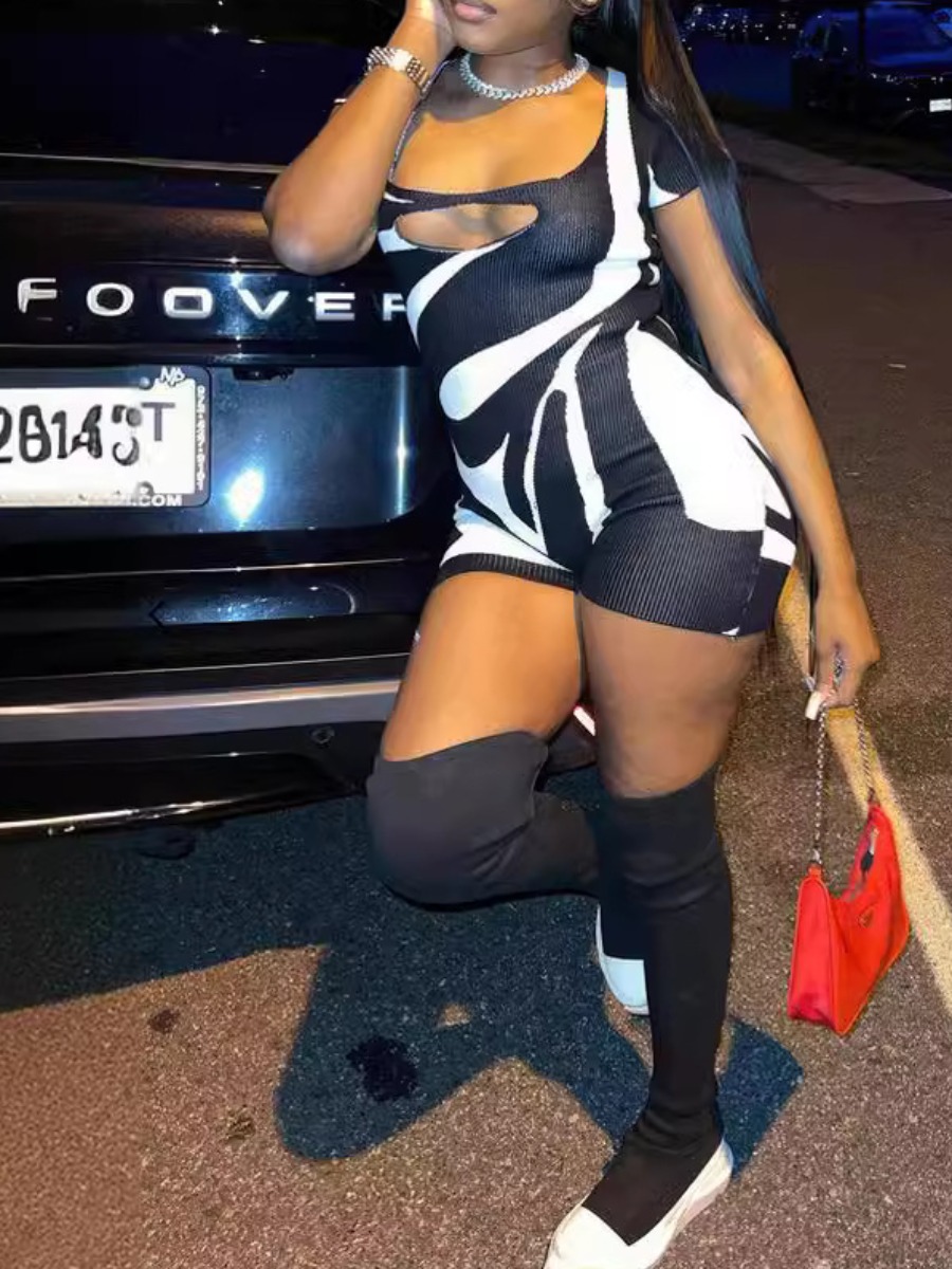 Buy LW Rib Knit Cut Out Patchwork Romper for $15.99 at @ Lovelywholesale.com