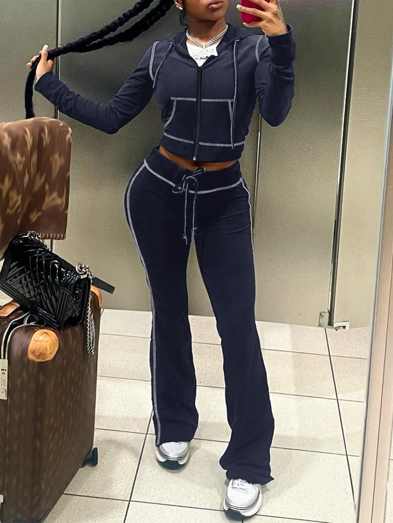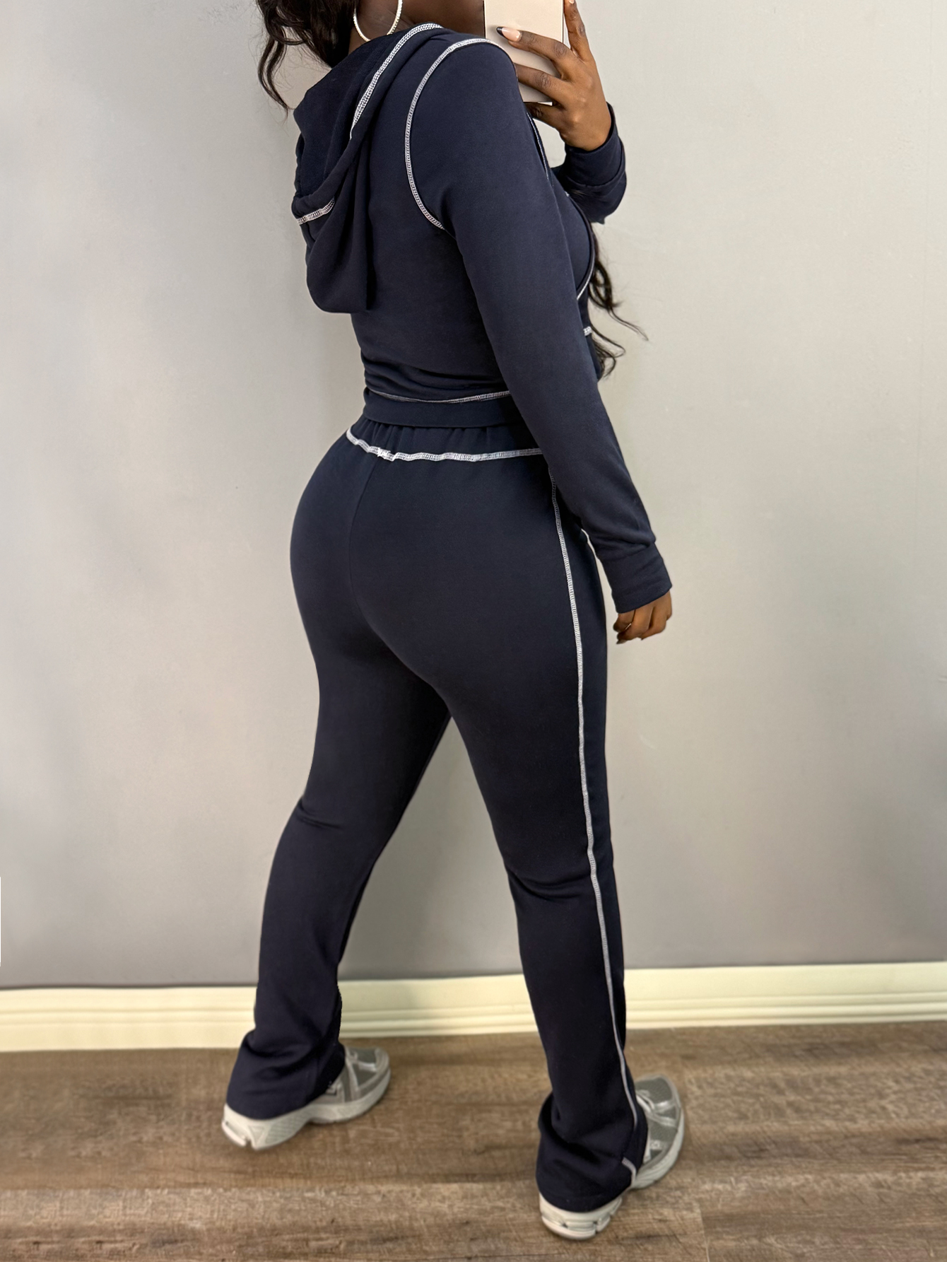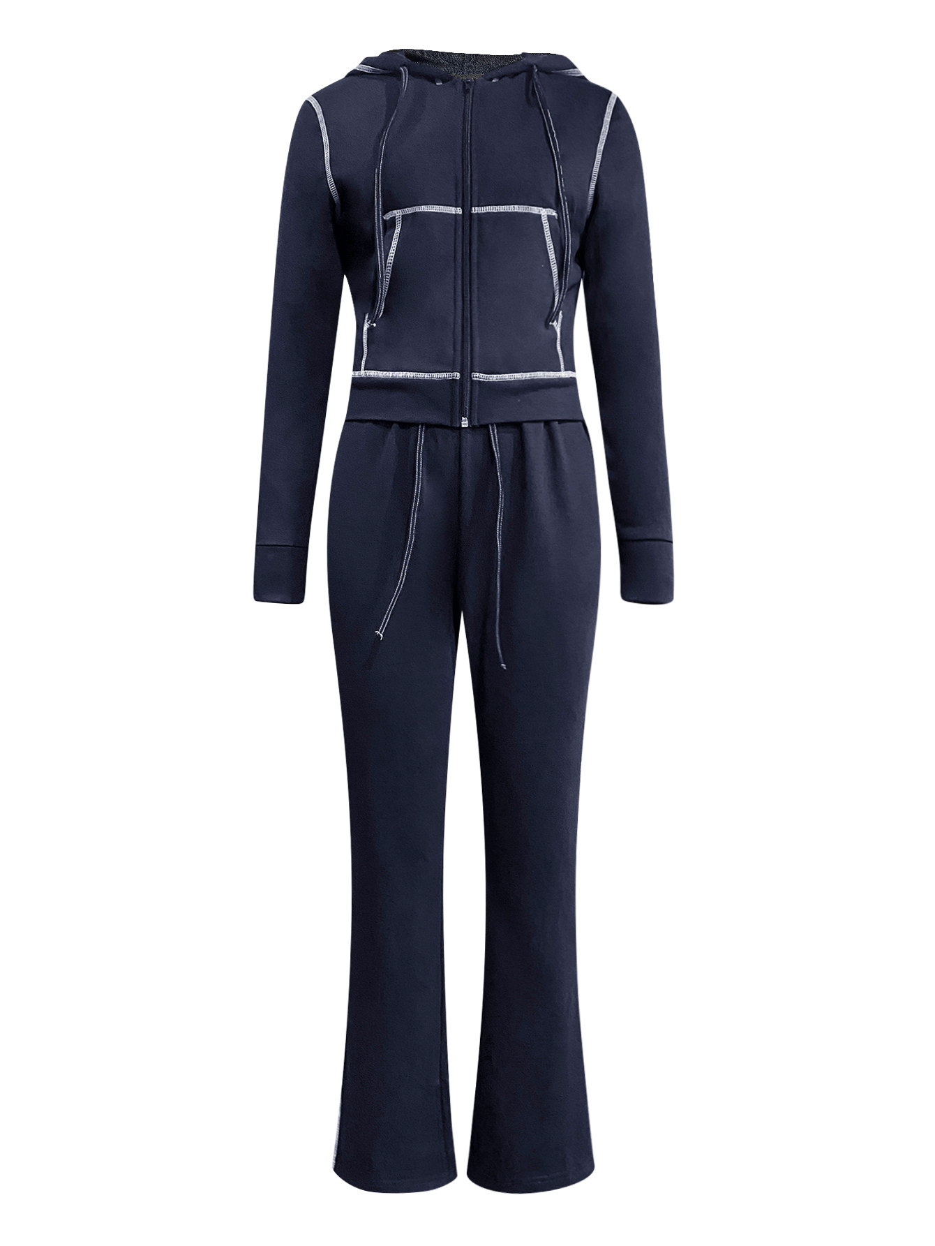 Buy LW Casual Sweat Hooded Collar Pocket Design Solid Color Long Sleeve Two-piece Pants Set for $25.25 at @ Lovelywholesale.com