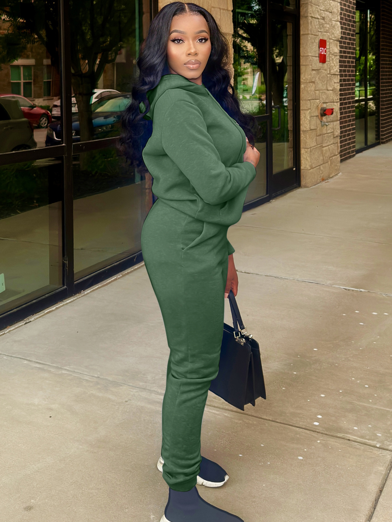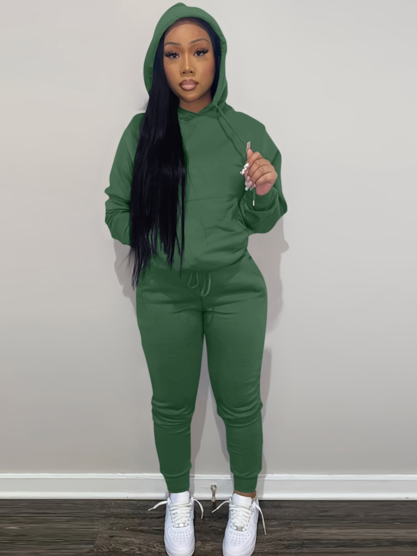 LW Lace Up Solid Color Regular Two-piece Pants Set.