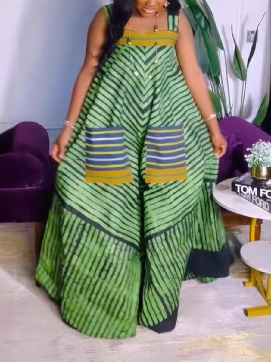 LW Striped Pocket Design Loose Cami Jumpsuit.