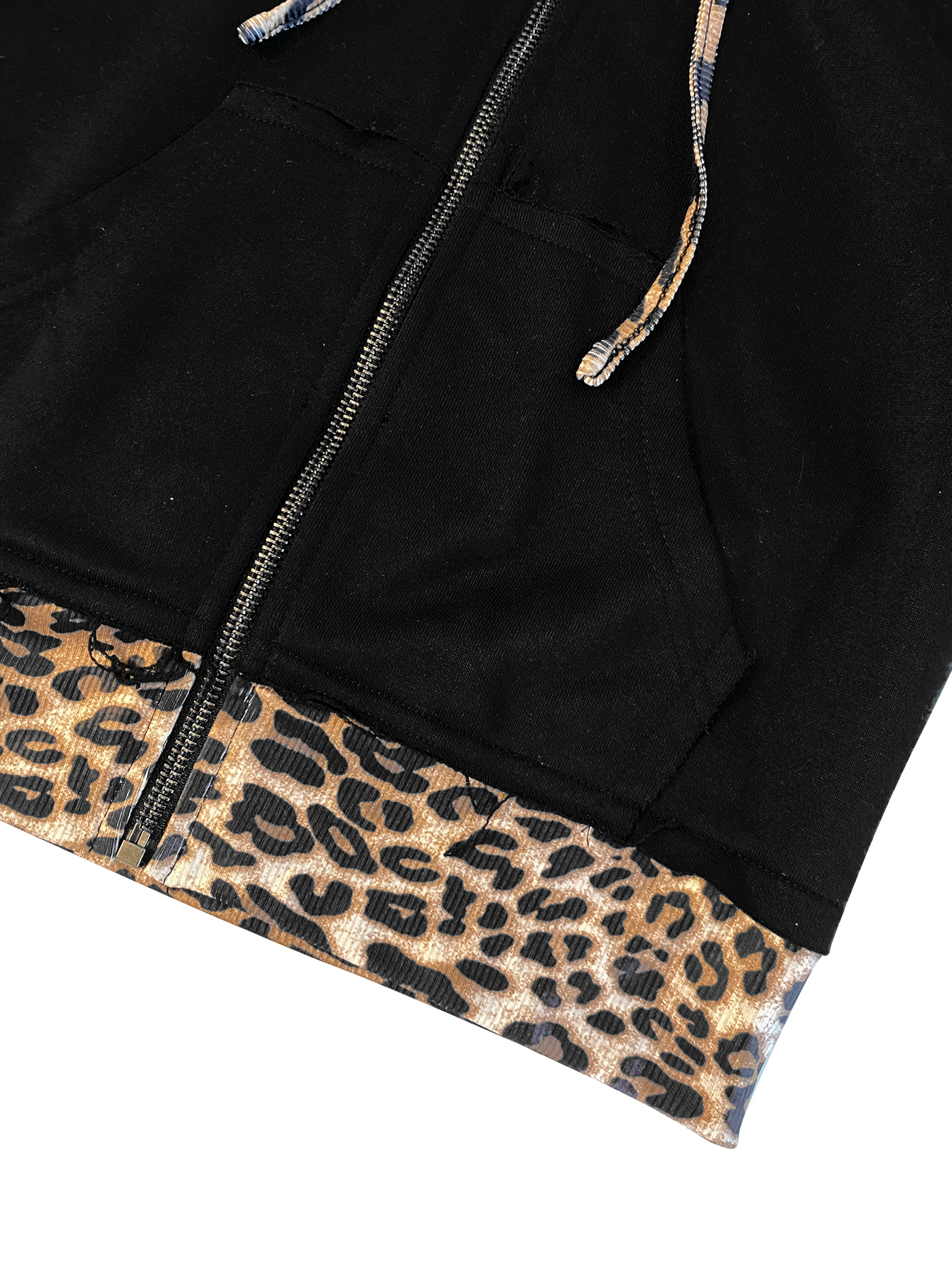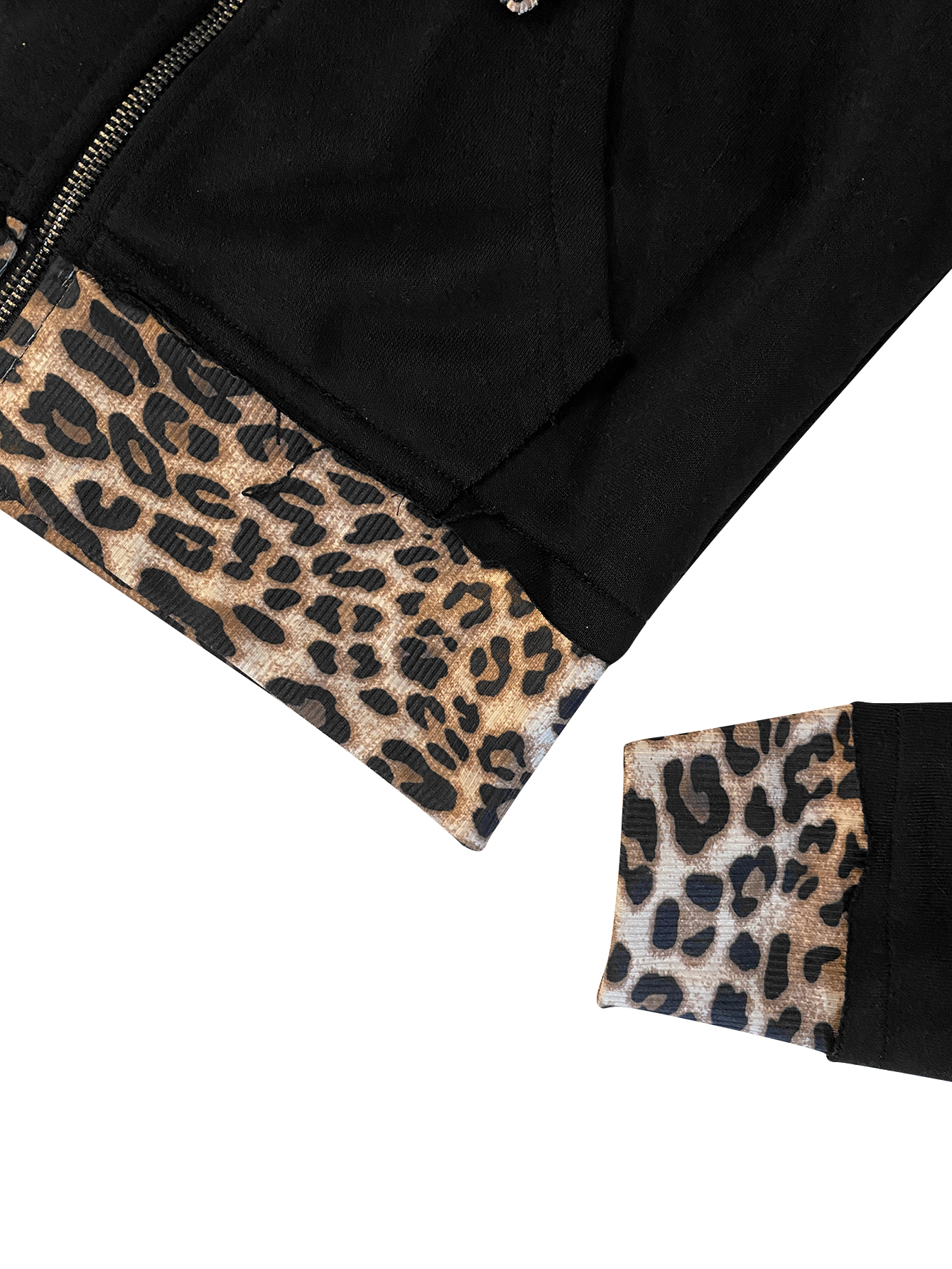 LW Casual Sweat Hooded Collar Patchwork Leopard Long Sleeve Two-piece Pants Set.