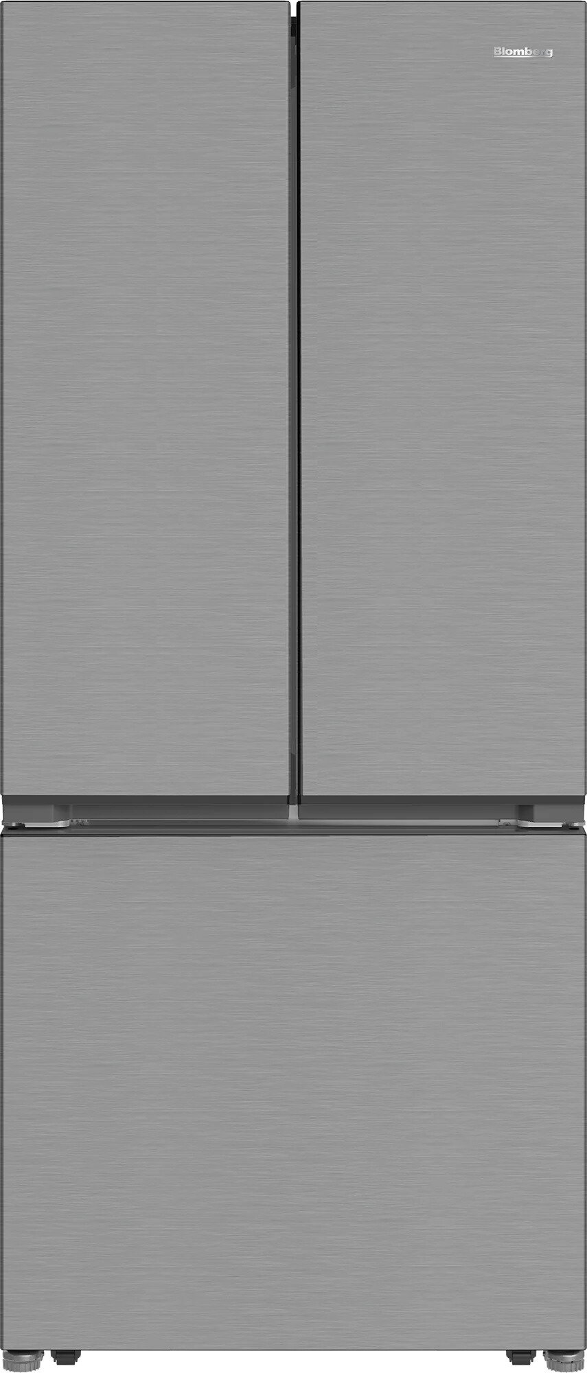 Counter-Depth French Door Refrigerator with 16.13 Cu. Ft. Capacity, 4 Glass Shelves, Gallon Door Bins, Deli Drawer, Blue Light Technology, and ENERGY STAR. 16.13 cu. ft. capacity offers plenty of space to keep your kitchen organized. Provides additional options for food storage. Perfect for storing large bottles, maximizing space for your essentials. Keeps the vegetables fresh without loosing their humidity. Provides optional space to store dairy products and other items kept under optimal storage conditions. Independently zoned and controlled cooling systems maintain even air temperature and humidity in separate freezer and fresh-food compartments, delivering enhanced food preservation and maximum energy efficiency. No air transfer between compartments means food in the freezer section freezes faster, items in the refrigerator stay fresher longer, and odors don't circulate. Blomberg's Blue Light Technology extends the freshness of produce by using continuous blue light to maintain photosynthesis, preserving natural flavors, colors, textures, and nutrients. Sabbath Mode. Door Open Alarm. ENERGY STAR Certified. Total Net Volume: 16.13 cu. Ft. Fresh Food Net Volume: 10.86 cu. ft. Freezer Net Volume: 5.27 cu. Ft. Type: Freestanding. Style: Counter-Depth French Door. Finish: Fingerprint-Free Stainless Steel with Finished Gray Sides. Metal Back Wall: Yes. Cooling System: Duo Cycle Frost Free Cooling. Control System: Electronic Controls. Control Display Type & Location: Digital LED Display, Interior. Crispers: 2 Humidity Controlled. Full-Width Deli Drawer: Yes. Shelves: 4 Full-Depth, Safety Glass (4 Adjustable). Total Number of Door Bins: 3 Full-Depth, Safety Glass (2 Adjustable). Gallon-Sized Door Bins: 2. Dairy Compartment: Yes. Sabbath Mode: Yes. Door Open Alarm: Yes. Interior Illumination: LED Side Walls and Ceiling. Freezer Configuration: Drawer. Freezer Drawers / Baskets / Bins: 1 Drawer, 1 Deep Bin with Removable Tray. Freezer Interior Illumination: Yes. Automatic Ice Maker: No. Auto Defrost: Yes. Fresh Food Temperature Range*: 33 F to 46 F (*Actual temperatures may vary with environment and other factors). Freezer Temperature Range*: -7F to 5F (*Actual temperatures may vary with environment and other factors). Environment Temperature Range: Operates in Temperatures Between 32 F and 110 F. Freeze Guard: Yes, Freezer Operates in Temperatures as Low as 5F. Modes: On/Off Power, Temperature Control, Water Filter Reset, Quick Freeze, Vacation, Sabbath. Compressor: Variable Speed VCC. ENERGY STAR Certified: Yes. Annual Energy Consumption: 525 kwh/year. Volts / Frequency: 120 V / 60 Hz. Rated Current: 2 A. Min. Circuit Breaker Size: 15 Amp. Sound Level: 39 dBA. Refrigerant Type: R600a. Plug Type NEMA: 3-Prong. Power Cord Length: 6 ft. Product (H x W x D): 69 11/16" x 29 3/4" x 27 9/16". Height With Hinge Cap: 69 11/16". Height Without Hinge Cap: 68 1/2". Depth With Handles: 27 9/16". Depth Without Handles: 27 9/16". Depth Without Doors: 24 7/32". Cutout Width: 30 15/16". Cutout Depth: 25 19/32". Cutout Height: 71 21/32". Carton (H x W x D): 73" x 32" x 30 1/2". Product Weight: 208 lbs. Shipping Weight: 233 lbs. Warranty: 1 Year Full Warranty, 2 Years Parts Warranty, 5 Years Sealed System Warranty.