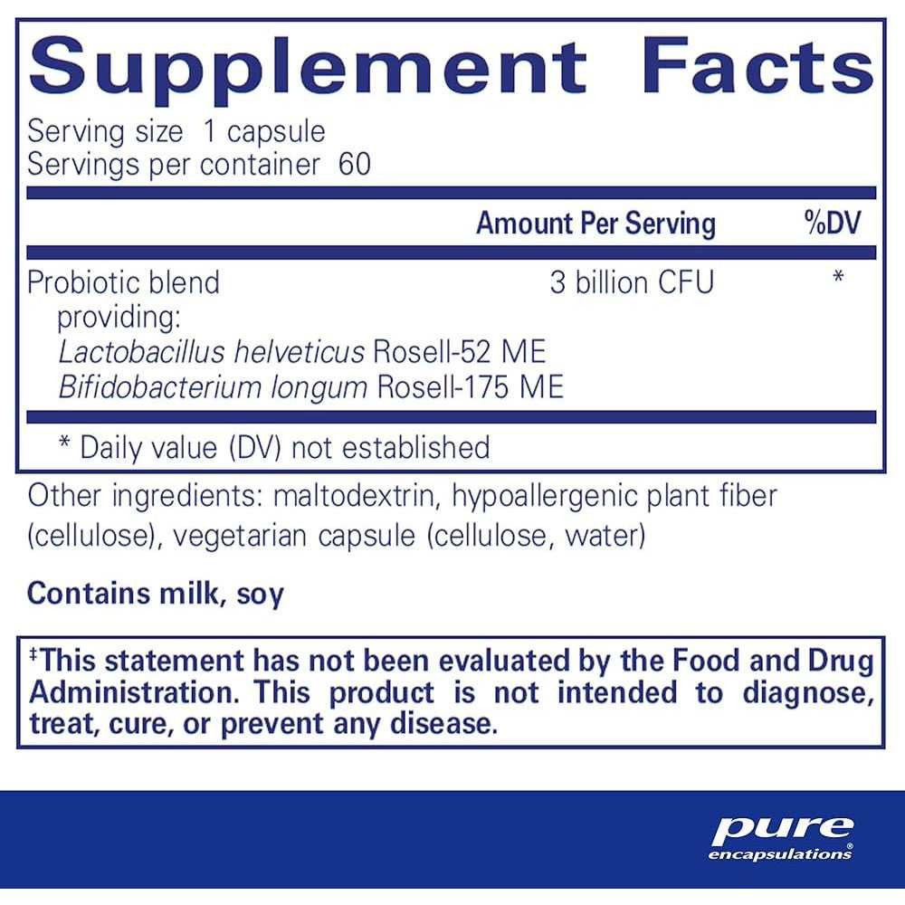 Pure Encapsulations ProbioMood is designed to support emotional well-being and mood balance through a specialized blend of probiotics. Featuring clinically researched probiotic strains this formula promotes a healthy gut-brain connection helping to support mood regulation and emotional health. Its ideal for individuals seeking natural support for mental clarity and stress management. Benefits: Supports Emotional Well-being: Helps promote a balanced mood by supporting a healthy gut-brain connection. Gut Health for Mental Clarity: Supports digestive health which plays a key role in regulating neurotransmitters and overall emotional balance. Stress Management: Aids in managing stress by promoting a healthy microbiome and mental resilience. How to Use: Take 1 capsule daily with or between meals or as directed by your healthcare practitioner.