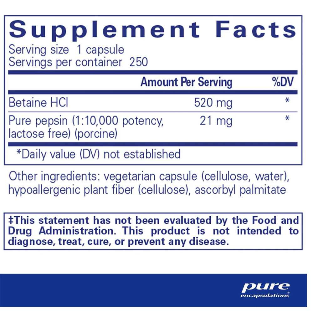 Buy Pure Encapsulations Betaine Hcl Pepsin - 250 Capsules for $51.99 at @ Beautifiedyou.com
