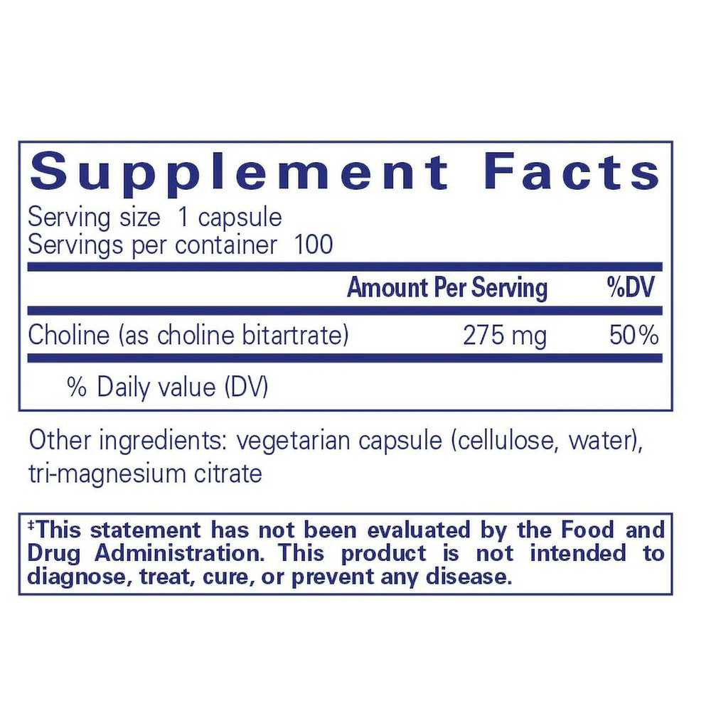 Pure Encapsulations Choline (Bitartrate) - 100 Capsules