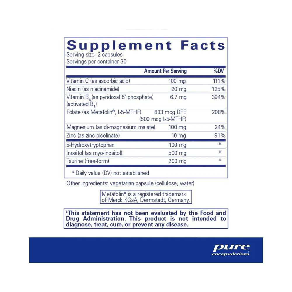 Pure Encapsulations Seroplus is a uniquely formulated supplement designed to support serotonin production and overall emotional well-being. It contains a synergistic blend of 5-HTP B vitamins and other key nutrients to promote a positive mood healthy sleep patterns and a balanced stress response. Benefits: Supports serotonin production to promote a positive mood and emotional balance. Helps regulate sleep patterns and supports relaxation. Enhances stress management and overall mental well-being. How to Use: Take 2 capsules 1-2 times daily between meals or as directed by a healthcare professional.
