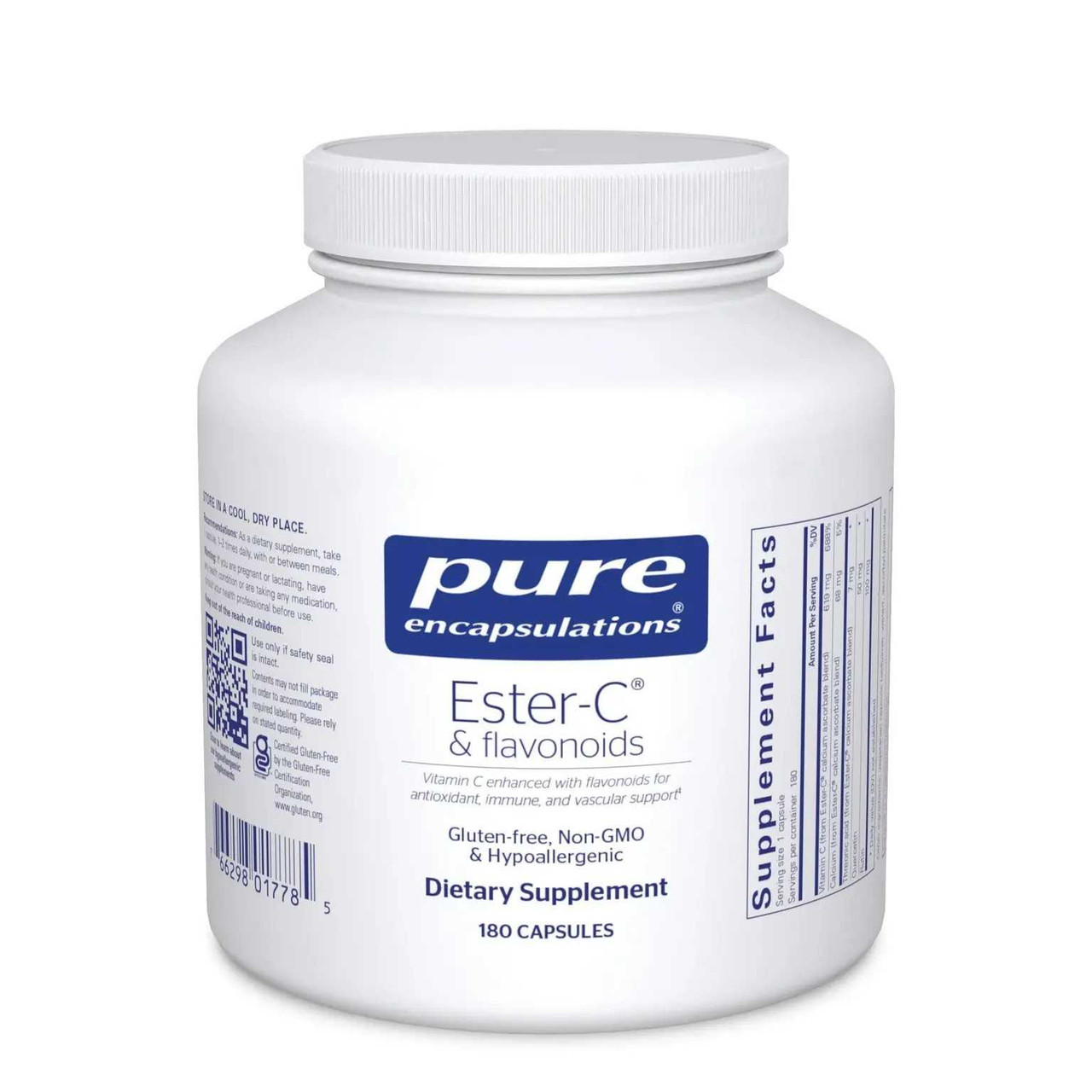 Pure Encapsulations Ester-C & Flavonoids offers a gentle immune-boosting form of vitamin C designed to be easily absorbed and retained by the body. With added flavonoids this formula provides powerful antioxidant protection supporting both immune function and overall cellular health without causing stomach discomfort often associated with traditional vitamin C supplements. Benefits: Enhanced Immune Support: Promotes immune health by delivering a sustained form of vitamin C that enhances the bodys defense mechanisms. Gentle on the Stomach: Ester-C is a non-acidic form of vitamin C ideal for sensitive stomachs. Powerful Antioxidant Properties: Combined with flavonoids it provides comprehensive antioxidant protection to cells and tissues. How to Use: Take 1-2 capsules daily with meals or as directed by a healthcare professional to enjoy the benefits of enhanced immune support and antioxidant protection.
