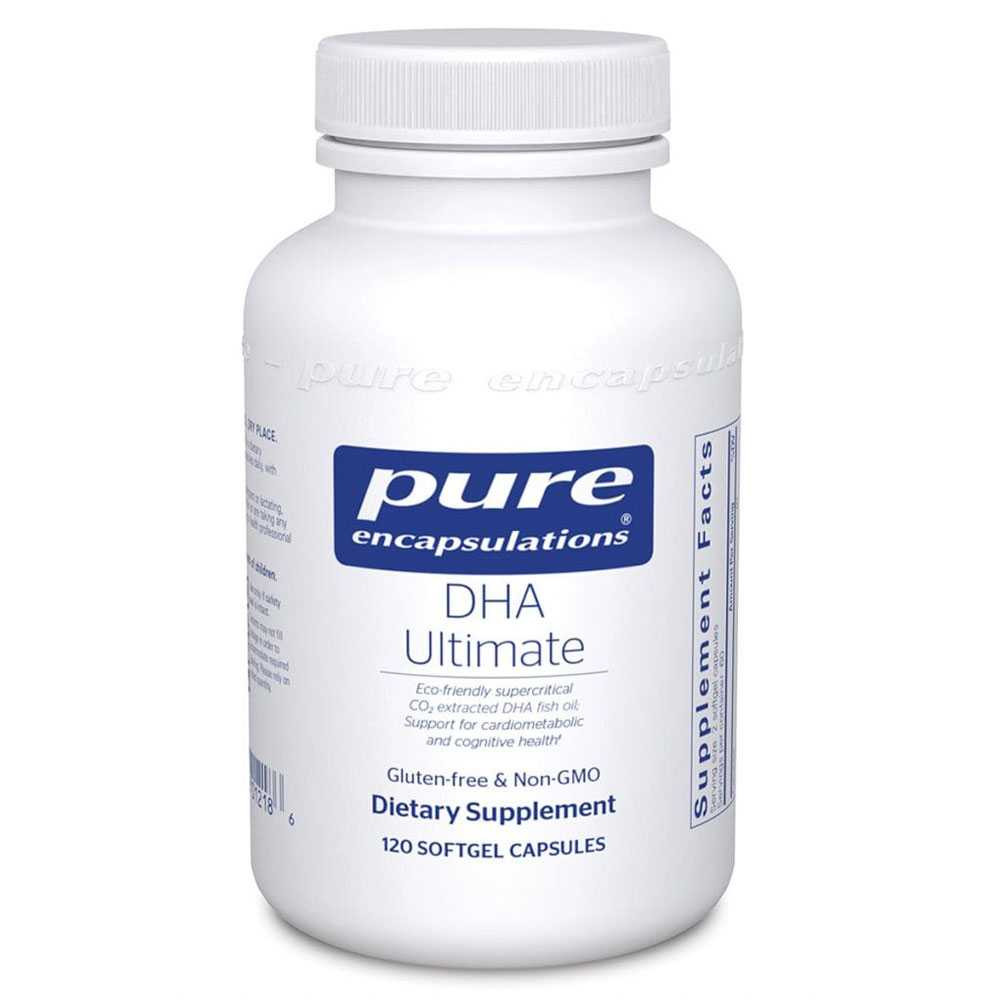 Pure Encapsulations DHA Ultimate provides a highly concentrated source of DHA an omega-3 fatty acid essential for supporting cognitive cardiovascular and visual health. Sourced from sustainable fish oils and carefully purified DHA Ultimate offers premium support for overall wellness. Benefits: Supports Cognitive Health: High levels of DHA promote brain function memory and mental clarity essential for all stages of life. Encourages Cardiovascular Wellness: Omega-3s support heart health by maintaining healthy blood lipid levels and promoting optimal blood vessel function. Promotes Eye Health: DHA is a critical component of the retina aiding in visual acuity and overall eye health. How to Use: Take 1 softgel 1-2 times daily with meals or as directed by your healthcare practitioner.