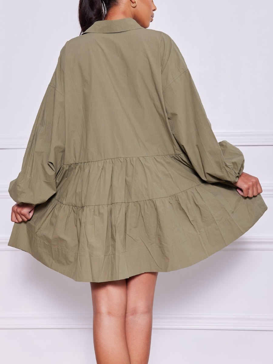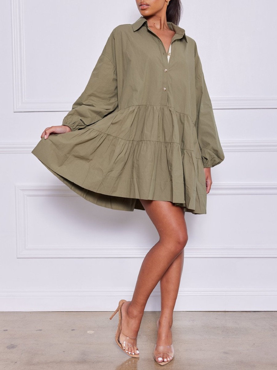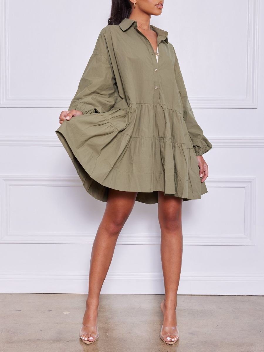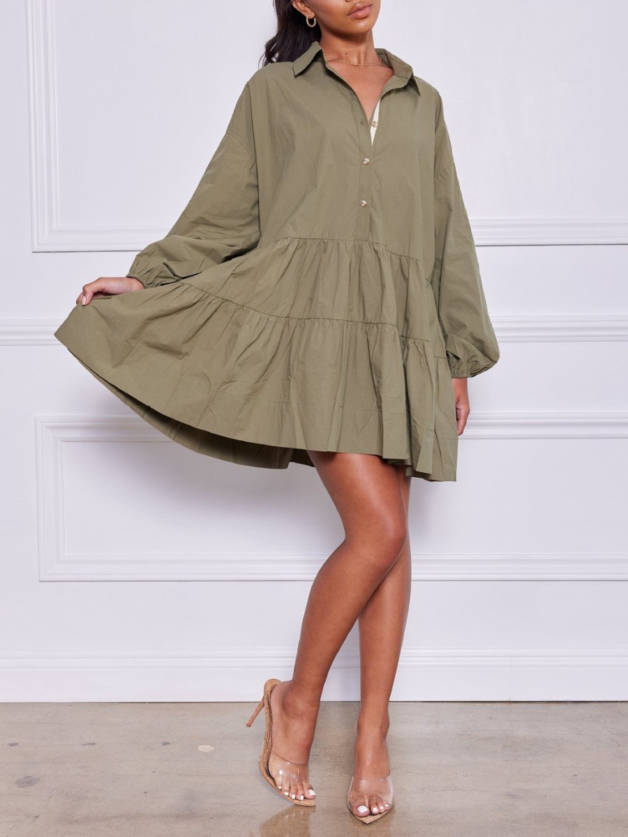LW BASICS Ruffle Hem Solid Color Mini Dress.