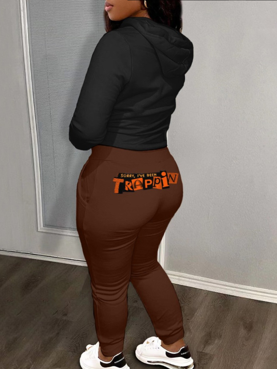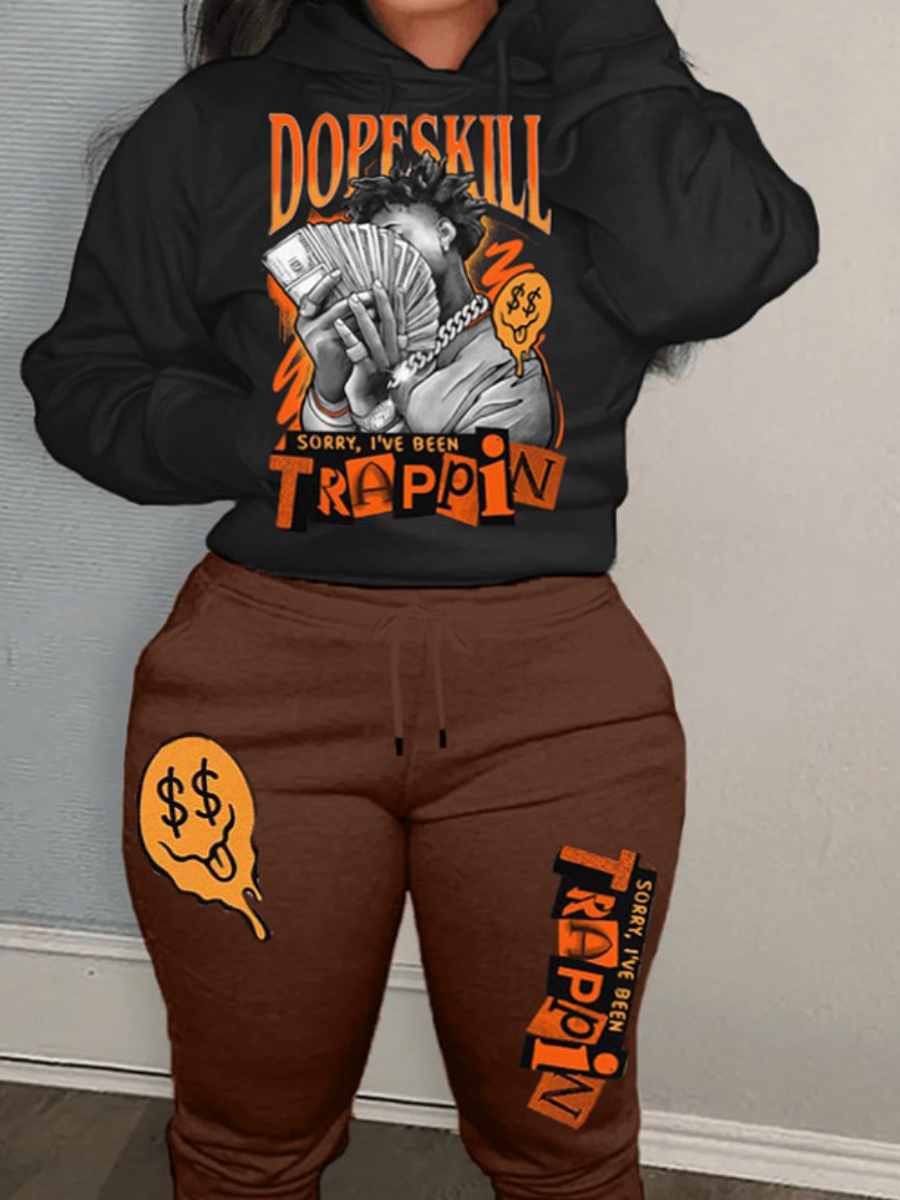 LW Plus Size Money Letter Print Kangaroo Pocket Tracksuit Set.