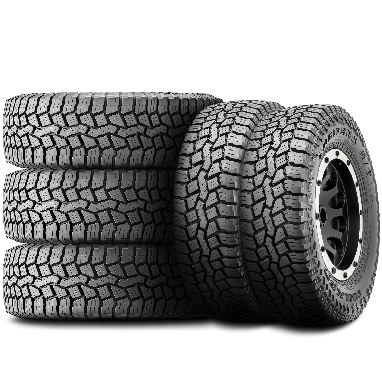 Falken Rubitrek A/T 01. FEATURES AND BENEFITS: All weather traction; All terrain traction; Enhanced controllability; Longer lasting tread life; . OVERVIEW: The Falken Rubitrek A/T 01 is an all terrain, all weather tire manufactured for SUVs and light trucks. Falken offers a 55,000 mile treadwear warranty with this tire model.The tire promotes great all weather traction. The silica-based tire compound and the special tread design improve dry, wet, and winter weather road grip. The compound keeps its flexibility even in colder temperatures, while the tread design finds good road grip at all times. Wide grooves manage to prevent hydroplaning, by dispersing water and slush from below the tires footprint. The different shaped tread elements, on the other hand, manage to eliminate snow from blocking the tire from its contact with the road surface. The enhanced road grip ensures a comfortable driving experience in all weather.The staggered tread blocks, their stiff tread area, deeper tread design, and the upper sidewall design enhance soft, loose, and uneven terrain road grip. In this manner, the tire is capable of securely performing on all off-road surfaces. The tread elements maintain a clean footprint to ensure constant road contact, by ejecting rocks and evacuating mud stuck between the tread elements. This also prevents stone retention from harming the tires casing. The better all terrain performance promotes a secure driving experience in all conditions.The maintained road contact of the tread design enhances controllability. The tread elements and the 3D siping detail enhance the road grip, stabilizing the drive. As the tires tread elements firmly grip the road contact, its steering responsiveness and driving stability are upgraded. In other words, the steering becomes quick and precise in its responsiveness to the drivers commands, while the tires structure is stabilized against the driving pressure affecting it. The large shoulder tread blocks manage to boost cornering, greatly by heightening the number of biting edges.The Falken Rubitrek A/T 01s special 3D canyon sipes also help lengthen the tread life. The tread designs shoulder sipes slow the tread wear rate down, as they are tread wear resistant. The special heat diffuser technology evenly distributes driving and load pressure along the tread area. The slower even tread wear prevents the formation of irregular tread wear across the tires surface, which boosts tread life and usability. The even load distribution also allows the model to carry and withstand heavier loads with ease, making the tires usage more versatile.All weather tires receive the three mountain peak and snowflake (3PMS) symbol for their exceptional winter weather performance. They are all season tires with extra winter weather grip, in order to guarantee safer year-round durability. This ensures their true and secure driving ability throughout the year. Manufacturers recommend changing tires every 10 years. As long as tires are properly stored before they are sold, the year of their manufacture will not shorten their service life.