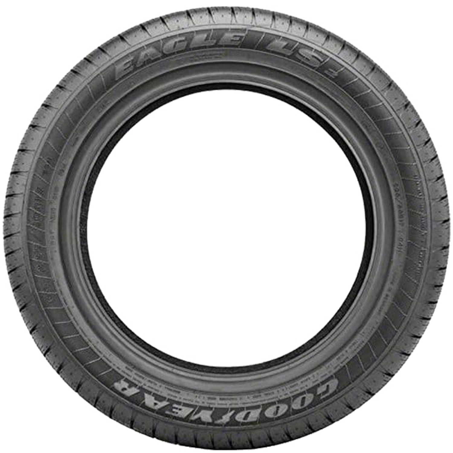 Goodyear Eagle LS2. FEATURES AND BENEFITS: Enhanced cornering ability; Precise steering response; Quiet tire; Easy handling; All weather traction; . OVERVIEW: The Goodyear Eagle LS2 is a touring, all season tire manufactured for passenger vehicles and SUVs.This all season tire provides excellent all weather traction, including in light snow. The specially designed tread pattern grips the road well in all weather conditions. The wide tread grooves enhance the tire's anti-hydroplaning ability and wet traction, to ensure a safer drive.This tire provides a quiet and comfortable drive. The computer optimized tread block design reduces the road noise heard in the cabin of the vehicle. At the same time, it follows the road surface well, enabling the driver to have a great feel for the road. Because of this the driver is able to respond quicker to changes in the road surface and avoid dangerous situations.The reinforced structure of the tire improves its high speed strength and durability. This added stability, along with the special tread pattern, ensures easy handling of the tire as well as enhanced steering responsiveness. The Eagle LS2's shoulder tread block pattern increases its cornering and maneuvering ability. The tire responds well to the driver's commands, boosting its safety and ride quality. Manufacturers recommend changing tires every 10 years. As long as tires are properly stored before they are sold, the year of their manufacture will not shorten their service life.