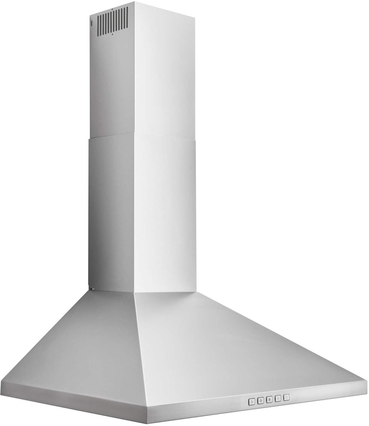 Wall Mount Chimney Hood with 450 CFM Internal Blower, Soft-Touch Control, LED Lighting, and HVI Certified: Width. 450 Max Blower CFM removes the pollutants and improves the air you breathe. The 3-speed backlit soft touch control makes operation easy. A quick-release dishwasher safe filters to aid in better ventilation practices. Bright LED lighting enhances your cooking experience. While ventilating the kitchen air, this range hood is still quiet at a sound level of 3 sones at normal speed, which is as loud as normal conversation. 5-Minute Delay Off Function. HVI Certified. ETL Listed. Filter Type: Micro Mesh. Lighting Type: LED. Sound Level (Sones): 3. Speed Levels: 3. Switch Control Type: Electronic Pushbutton. CFM: 450 Max. Diameter: 6" Round. Vent Type: Convertible with Kit. Duct Direction: Vertical. Bulb (Recommended Type): Integrated LED Module. Heat Sentry: No. Damper Included: No. Light Bulbs Included: No. Ductless Recirculation Capable: No. Ductless Filter Or Kit Included: No. Remote Operation Capable: No. Boost Mode: No. Built-In Timer: No. Volts: 120 V. Rated Amps: 2.6. Hz: 60. Wattage: 312. Width: 23 9/16". Depth: 19 11/16". Height: 25 3/8". Manufacturer Warranty: 1 Year. HVI Certified: Yes. UL Listed: No. ADA Compliance: No. ENERGY STAR Certified: No.
