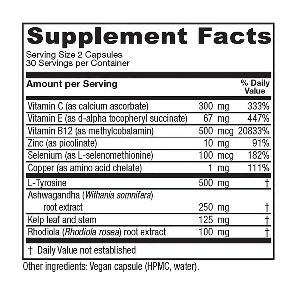 Unlock the vibrant potential of your thyroid with Vitanica ThyroFem a unique blend designed specifically for women. Featuring an array of thoughtfully selected ingredients these capsules support healthy thyroid function while nurturing your overall well-being. Each dose is brimming with essential nutrients that work synergistically to promote a balanced metabolism and sustained energy levels helping you regain that pep in your step. With a focus on natural high-quality components this supplement empowers you to reclaim your vitality and embrace lifes adventures with renewed vigor. Benefits: Comprehensive Support: Blends key nutrients that bolster thyroid health and hormonal balance. Natural Ingredients: Crafted from herbal and nutritional allies to ensure optimal absorption and effectiveness. Enhanced Energy: Promotes metabolism and energy production helping you feel your best every day. Women-Focused Formula: Specifically designed to address the unique needs of womens health. How to Use: Dosage: Take as directed on the label typically 1-2 capsules daily. Storage: Keep in a cool dry place away from direct sunlight. Precautions: Read the ingredients list and instructions on the bottle and consult a healthcare professional before using this product especially if you are pregnant nursing taking other medications or have a pre-existing medical condition. Do not exceed the recommended dosage.