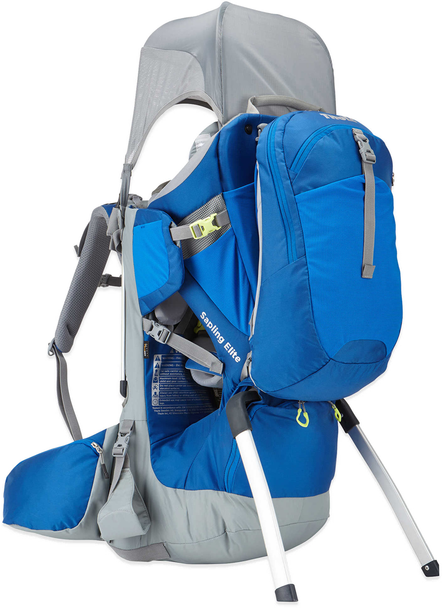 Thule's Sapling Elite child carrier safely and comfortably carries your precious cargo while on the trail and effortlessly transitions between parents with simple torso and hipbelt adjustments. And with premium features like a child viewing mirror, removable backpack and roomy hipbelt pockets, you and your child will never want to leave the trail. Fully adjustable back panel and hipbelt provide a perfect fit and comfortable carry and make the transition between parents quick and easy; Mesh pockets, hydration reservoir sleeve, a removable backpack and a large zippered compartment store water, diapers, clothes, rain gear, and other essentials; Keep essentials close at hand with two extra roomy zippered hipbelt pockets that store toys, snacks and gadgets; Mirror lets you monitor your precious cargo; Load stabilizer straps allow on-the-go adjustments to the backpack's center of gravity by pulling the child closer to the parent for a more comfortable carry; Deployable sunshade keeps your child cool and protected from the harsh sun; Plush, height adjustable, ergonomic seat efficiently distributes the child?s weight by providing inner thigh support; Dual access loading allows you to load your child from the top or side of the carrier; Removable stirrups let your little one rest their legs and readjust themselves on the trail; Breathable back panel provides padding and support at critical contact points, allowing air to circulate around your back, keeping you cool; Specifications: Material: 210D Cordura Nylon | 420D Nylon; Height: 28.75 in; Width: 12.25 in; Depth: 13.75 in;.
