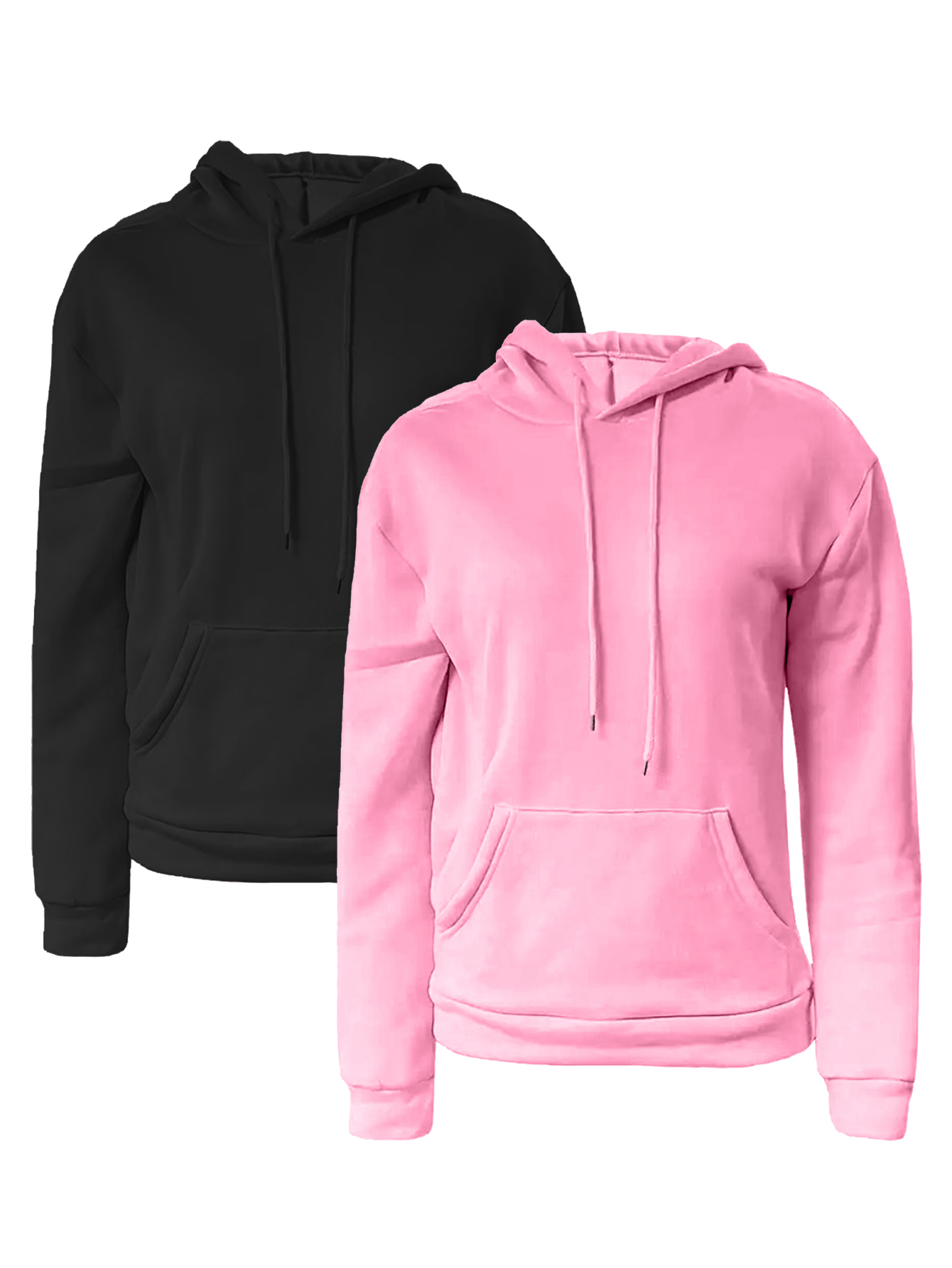 LW BASICS 2 Pack Solid Color Kangaroo Pocket Hoodie Sweatshirt