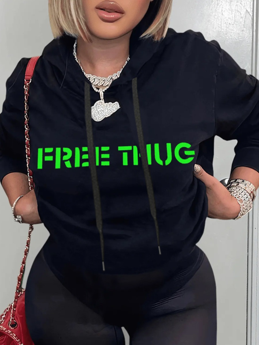 Buy LW Letter Print Kangaroo Pocket Hoodie for $8.99 at @ Lovelywholesale.com
