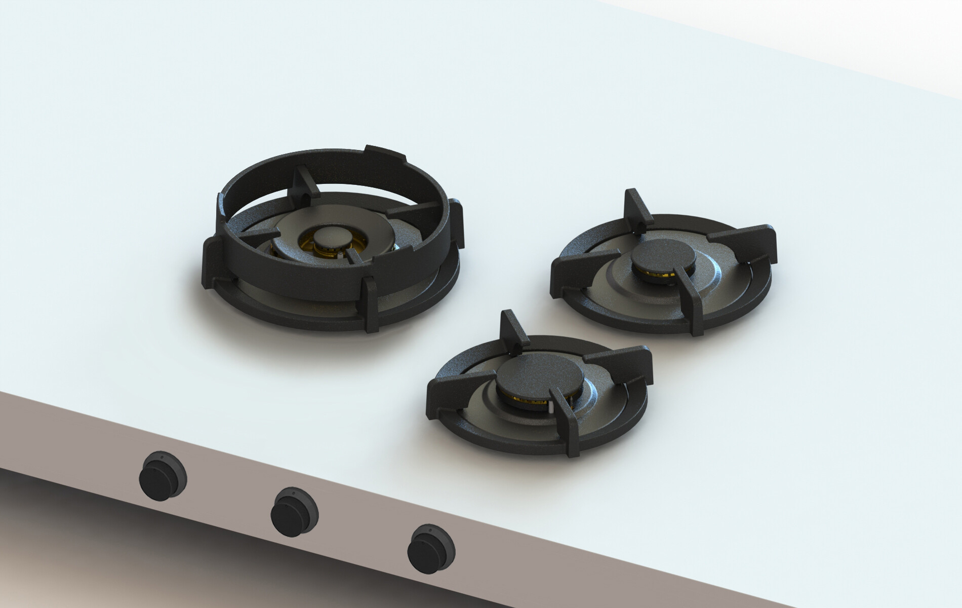 24" Modular Gas Cooktop with 3 Burners, Automatic Spark Ignition, Double-Enamel Cast Iron Pan Supports, Controlled Power, Easy-to-Clean Parts, Safety Shut-Off Control and Handmade in Holland: Brass / Front Knobs / Liquid Propane. With a multifunctional burner designed for both low and high powered cooking, you can quickly and easily switch between frying, simmering or roasting. There is always sufficient space for your pans. The different parts of the burner can be separated and cleaned. No raised corners, just a flat countertop to clean. The possibility to create your ideal cooking set-up that fits the available space in your kitchen and your personal cooking style. PITT Cooking America will work with any countertop besides wood. This Dutch innovation has passed a long and solid test phase, with very positive results. During use, the temperature of the countertop will remain low and there will be a minimal transfer of heat. Utilizes a pilot-thermocouple 100% safety shutoff. Each individual cooking system is being hand-assembled in a production hall in a small village, close to Utrecht. No machine involved. More space for larger pots. Powerful burners. 5-year full warranty. Burners: 3. 1x: 1024 - 6142 BTU. 1x: 1024 - 10236 BTU. 1x: 682 - 17061 BTU. The controls: Front Side. Module dimensions (LxBxH): 19 13/16" x 21"x 3 1/2". Minimum Countertop Depth: 23 5/8". Minimum Cabinet Width: 23 5/8". Countertop Thickness: 5/32" - 1 3/8". Minimum C-Measurement: 1 31/32. Support Bar Needed: Yes. Automatic spark ignition: Yes. Flame protection: Yes. Weight: 40 4/5 lbs. Shipping Weight: 58.42 lbs. Wok ring: Yes.