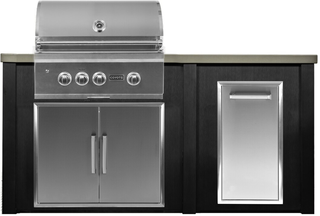 30" Liquid Propane Built-in Grill with Double Access Doors Storage, Pull Out Trash, and 6 ft Island in Black. Coyote Outdoor Appliance Package COYISLANDOP101.