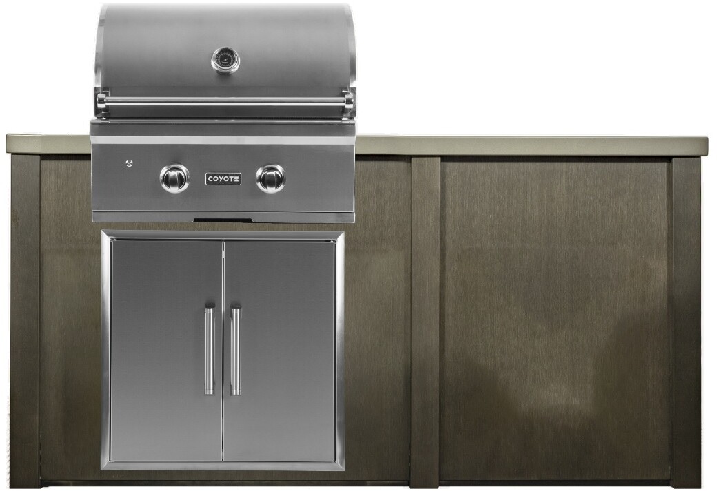 28" Liquid Propane Built-in Grill with Double Access Doors, and 5.5 ft Island in Bronze. Coyote Outdoor Appliance Package COYISLANDOP118.