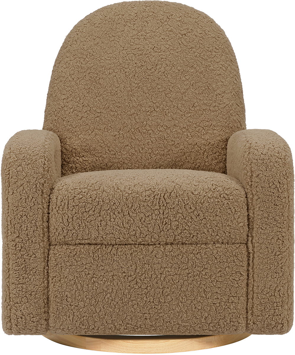 The Nami Glider Recliner is an elevated nursery accent piece that's both playful and comfortable with its round and friendly silhouette. The oversized, organic proportions, coupled with its natural wood base, fit into a soft and modern palette. Rest and recharge in this recliner with its built-in USB port, smooth swivel motion, and effortless back and forth gliding. Lean back and relax at the touch of a button with this recliner's quiet electronic control button. Pair with Naka or Enoki Storage Ottoman to complete the look. Features POWER RECLINER: Smooth and quiet reclining mechanism lowers headrest and raises footrest effortlessly with the push-button control panel and an included USB A/C charging port keeps your phone fully charged. PLEASE NOTE: Charging panel is only rated for small devices such as a phone, DO NOT use for large devices such as a tablet. Doing so will damage the motor and eliminate power (charging and reclining) capabilities.; SWIVELS AND GLIDES: Effortlessly swivels 270 degrees and glides back and forth in an upright position.; GREENGUARD GOLD CERTIFIED: Tested for over 10,000 chemical emissions and VOCs, undergoing rigorous scientific testing to meet some of the world's most stringent chemical emissions requirements. It contributes to cleaner indoor air, creating a healthier environment for your baby to sleep, play, and grow.; TEXTURE-RICH FABRIC WITH WOOD BASE: Upholstered by hand in texture-rich boucle fabric on light wood base to bring a subtle hint of modern-styling.; EMISSIONS-TESTED: Foam used in the seat meets all CA TB117-2013 flammability requirements and is CertiPUR-US certified, certifying the foam is made without PBDE or Tris flame retardants, heavy metals, formaldehyde, CFCs, and phthalates regulated by the CPSC.; FSC CERTIFIED WOOD: Wood used in the frame of this product comes from well-managed,_FSC-certified forests. The FSC label means that wood has been harvested to benefit communities, wildlife, and the environment.; EASY SETUP: A few simple steps with no tools required.; Specifications Made in ChinaDIMENSIONSAssembled Dimensions: 35.5"L x 32.5"W x 41.5"HAssembled Weight: 116lbsSeat Dimensions: 21"D x 22"WSeat Height: 21"HArm Rest to Seat Height: 6.5"Seat Back Height: 27"Fully Reclined Length 64.5".