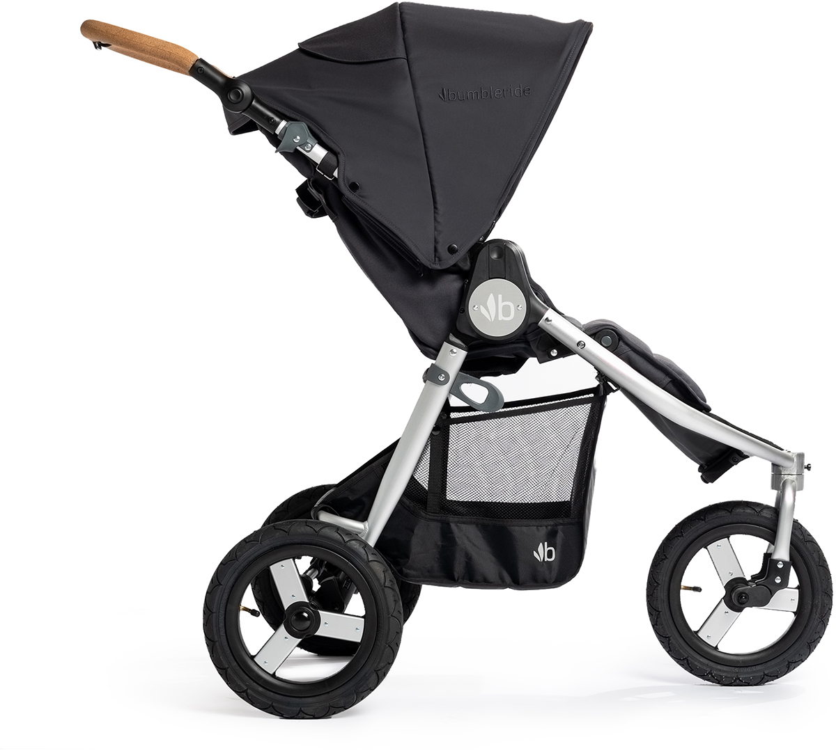 Take the road less traveled. The Bumbleride Indie is our all-terrain stroller complete with a lightweight frame and compact footprint for ultimate versatility. It gets its smooth push from air-filled tires and all-wheel suspension. Indie has a lay flat seat and built-in infant mode. Ready to use from birth (with no attachments) and through toddlerhood. Debuting in 2024 with a 100% natural and non-toxic cork handle. Responsibly made and manufactured. Highlights: Built for all-terrain, (3) 12" air-filled tires and all wheel suspension; Infant-ready with no attachments, including lay flat seat and built-in infant-mode; Compatible with bassinet (sold separately) and infant car seats (adapters sold separately); Hot Shoes pre-installed for easier set up for adapters + bassinets; Lightweight, compact frame with spacious cargo basket; Easy one-step fold & standing stow; Health checklist: Non-toxic OEKO-TEX certified fabrics. Free from PFAS, Fire Retardant, PVC, BPA, Phthalates,Polyurethane Foam, Chlorine, Vinyl and Formaldehyde; Eco Checklist: Adjustable, non-toxic handlebar made of all-natural cork; PFAS free durable water repellent; Eco Fabric made from OEKO-TEX Standard 100 certified 100% recycled PET (65 plastic water bottles per stroller); Black colorway uses innovative solution dye process that conserves approximately 25-40 gallons of water perstroller; Dusk colorway uses a soft-to-the-touch, poly/wool blend for the interior seat lining certified by the ResponsibleWool Standard; 50% of plastic frame components sourced from upcycled fishing nets; Plastic free packaging; Indie Tech Specs: Recommended Use: Birth 55 lb.; NEW, adjustable, non-toxic, anti-microbial Cork handle with safety strap included; UPF 45+ canopy with pop-out extension for extra coverage + air vents; Eco-fabrics free from harmful chemicals, including lead, PVC, fire retardants, phthalates and polyurethane foam(100% rPET + OEKO-TEX Standard 100 Certified); One step hinged fold with ergonomic trigger release and auto-lock; One-handed, backrest recline strap; Built in storage pockets for water bottles and snacks; Large cargo basket with storage for air pump (pump included); Air-filled tires (12") and all wheel suspension; 5-point breakaway harness with shoulder pads; Machine washable seat fabrics + canopies (all removable); Adjustable footrest for infant option and deep footwell for toddlers; 360-degree swivel front wheel with in-line lock option for all-terrain and light jogging; Lightweight and durable aluminum frame; What's Included 3 Year Warranty; Air-pump; Wrist strap; Detailed Dimensions: Weight: 24 lb.; Capacity: 55 lb.; Standing/Unfolded: 46 x 24.5 x 40 in.; Folded: 31.5 x 24.5 x 13 in.; Handle range: 26 - 46 in.; Wheel size: All 3x 12 in.; Packaging DIMs: 20 x 12 x 31 in.; Seat Area: 9 x 14 in.; Backrest Area: 19 x 14 in.; Seat to Canopy: 23 in.; Canopy: 34 x 18 in.; Footwell: 13 x 15 in.; Cargo Basket: 17 x 15 x 11in.; Cargo Basket Capacity: 15 lb.; Optional Accessories: Car seat adapters (specific to car seat models, see car seat compatibility below); Bassinet; Mini Board; Parent Pack; Non-PVC Rain Cover; 100% GOTS Certified Organic Cotton Infant Insert; 100% GOTS Certified Organic Cotton Seat Liner; Travel Bag; Cold Weather Footmuff; Seat Liners; Bug Net; Bumper Bar; Car Seat Compatibility: Clek Liing + Nuna Pipa Series + Cybex Aton series + Maxi Cosi series (adapter MNCL-28); Chicco Key Fit series + Graco SnugRide series (adapter GCH-15); Peg Perego Primo Viaggio 4-35 series (adapter PEG-15);.