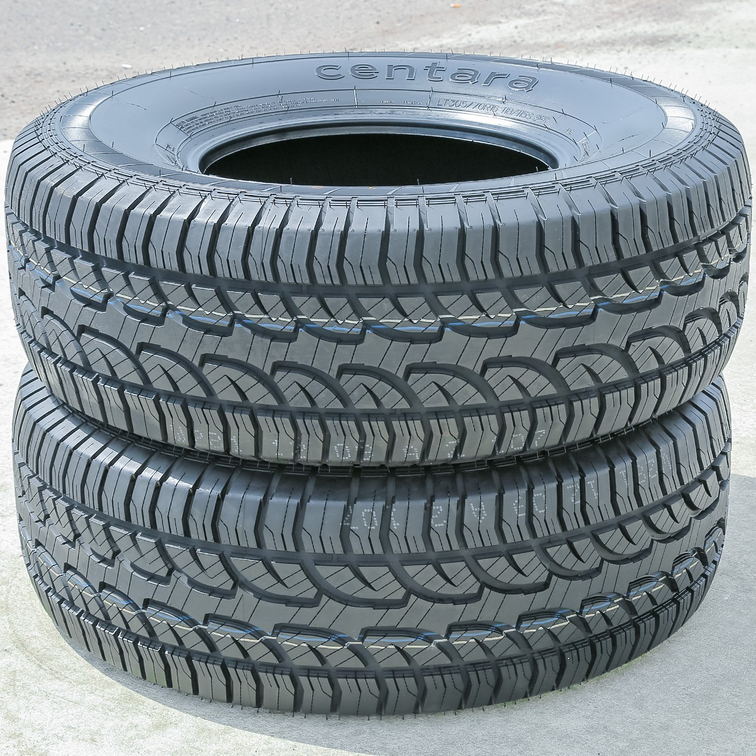 Centara Terrena A/T. FEATURES AND BENEFITS: All terrain traction; Enhanced controllability; Upgraded load durability; . OVERVIEW: The Centara Terrena A/T is an all terrain, all season tire manufactured for SUVs and light trucks.The tire improves the all terrain traction with the aggressive tread design. The open-shoulder detail and the staggered block pattern upgrade the soft, loose and uneven terrain traction. These tread elements improve the grip on the road surface with extra biting edges, increasing the deep mud and loose terrain traction. The tread design also manages to keep the footprint clean. They eliminate mud, snow and rocks from the footprint, preventing stone retention and ensuring the tire's constant surface contact.The flat footprint and the ideal block pattern upgrade the surface contact while the tires are in motion, during its on- and off-road terrain surfaces. These tread elements enhance the surface contact, upgrading the steering responsiveness and the driving stability. In other words, the structure is secured against the driving pressure affecting the tire, while the steering is quicker and more precise in its response to the driver's commands. This combination allows the tire to enhance the overall controllability.The Terrena A/T enhances the load durability as well. The reinforced internal structure keeps the ideal tire shape under the load and driving pressure. This greatly improves the overall load carrying and withstanding ability, boosting the overall load capacity. Manufacturers recommend changing tires every 10 years. As long as tires are properly stored before they are sold, the year of their manufacture will not shorten their service life.
