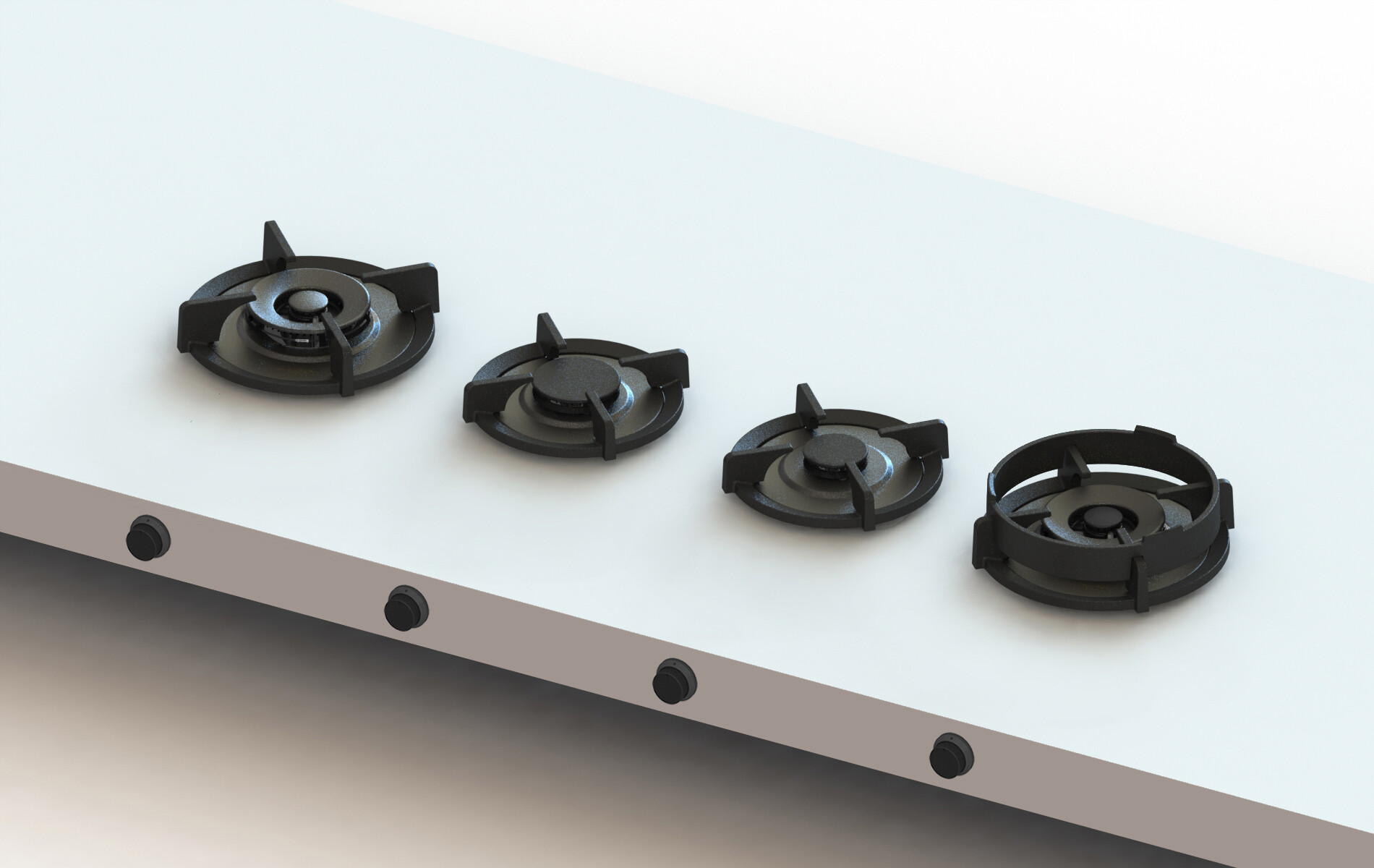 48" Modular Gas Cooktop with 4 Burners, Automatic Spark Ignition, Double-Enamel Cast Iron Pan Supports, Controlled Power, Easy-to-Clean Parts, Safety Shut-Off Control and Handmade in Holland: Black / Front Knobs / Natural Gas. With a multifunctional burner designed for both low and high powered cooking, you can quickly and easily switch between frying, simmering or roasting. There is always sufficient space for your pans. The different parts of the burner can be separated and cleaned. No raised corners, just a flat countertop to clean. The possibility to create your ideal cooking set-up that fits the available space in your kitchen and your personal cooking style. PITT Cooking America will work with any countertop besides wood. This Dutch innovation has passed a long and solid test phase, with very positive results. During use, the temperature of the countertop will remain low and there will be a minimal transfer of heat. Utilizes a pilot-thermocouple 100% safety shutoff. Each individual cooking system is being hand-assembled in a production hall in a small village, close to Utrecht. No machine involved. More space for larger pots. Powerful burners. 5-year full warranty. Burners: 4. 1x: 1024 - 6142 BTU. 1x: 1024 - 10236 BTU. 2x: 682 - 17061 BTU. The controls: Front Side. Module dimensions (LxBxH): 15 7/8" x 45 9/16" x 3 1/2". Minimum Countertop Depth: 23 5/8". Minimum Cabinet Width: 47 1/4". Countertop Thickness: 5/32 - 1 3/8". Minimum C-measurement: 1 31/32". Support bar needed: Yes. Automatic spark ignition: Yes. Flame protection: Yes. Weight: 56 1/5 lbs. Shipping Weight: 85.98 lbs. Wok ring: Yes.