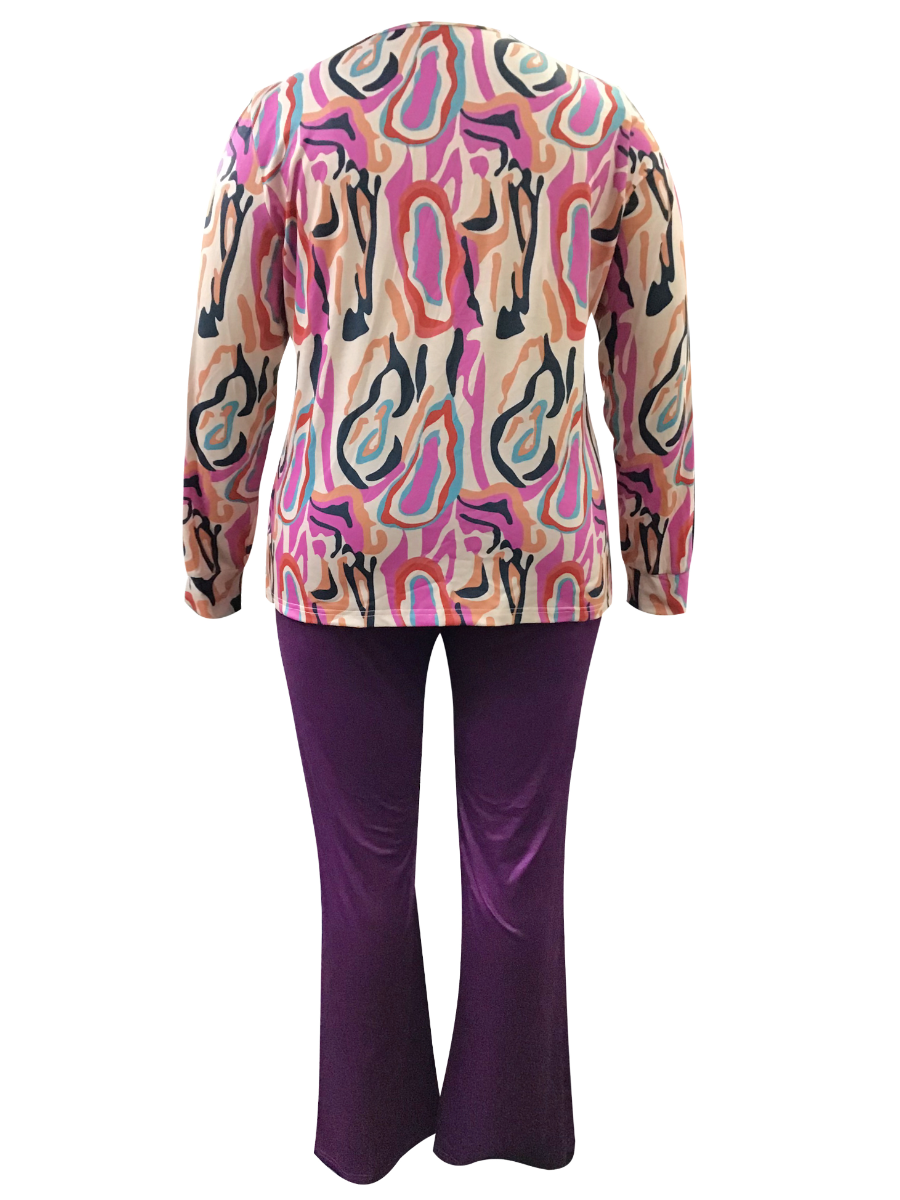 LW BASICS Plus Size Mixed Print Regular Two-piece Pants Set.