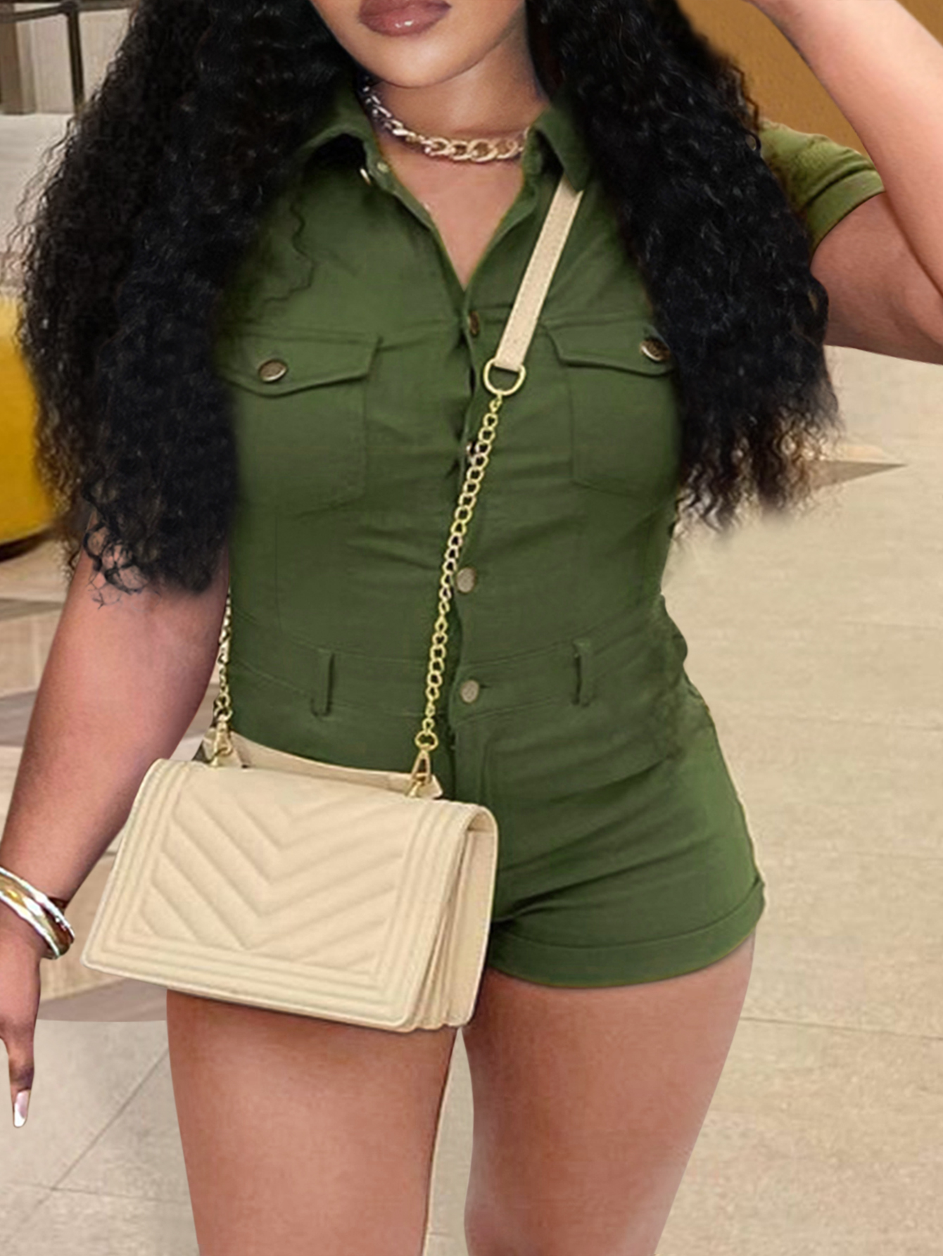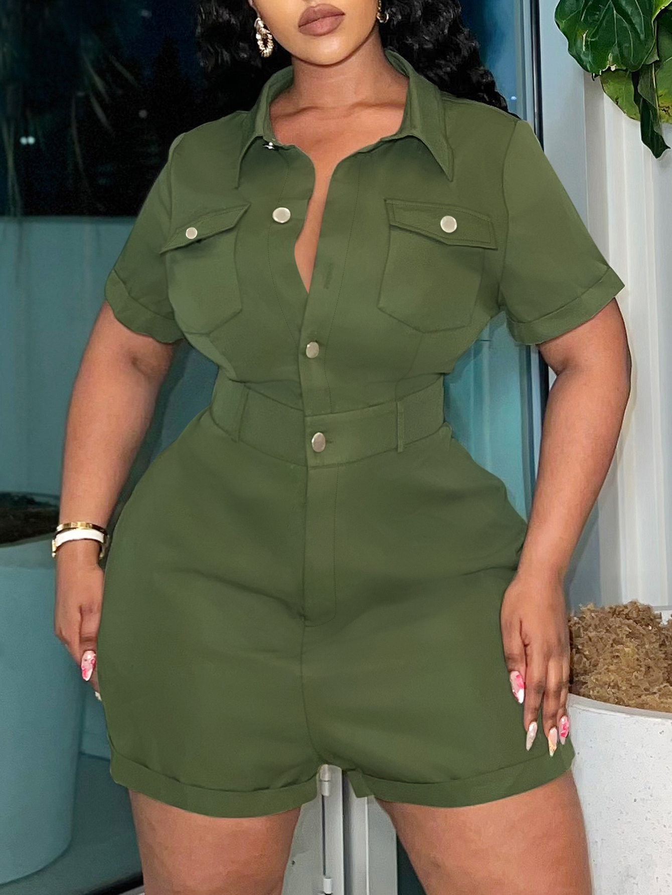 Buy LW Plus Size Button Pocket Design Cargo Romper for $22.19 at @ Lovelywholesale.com