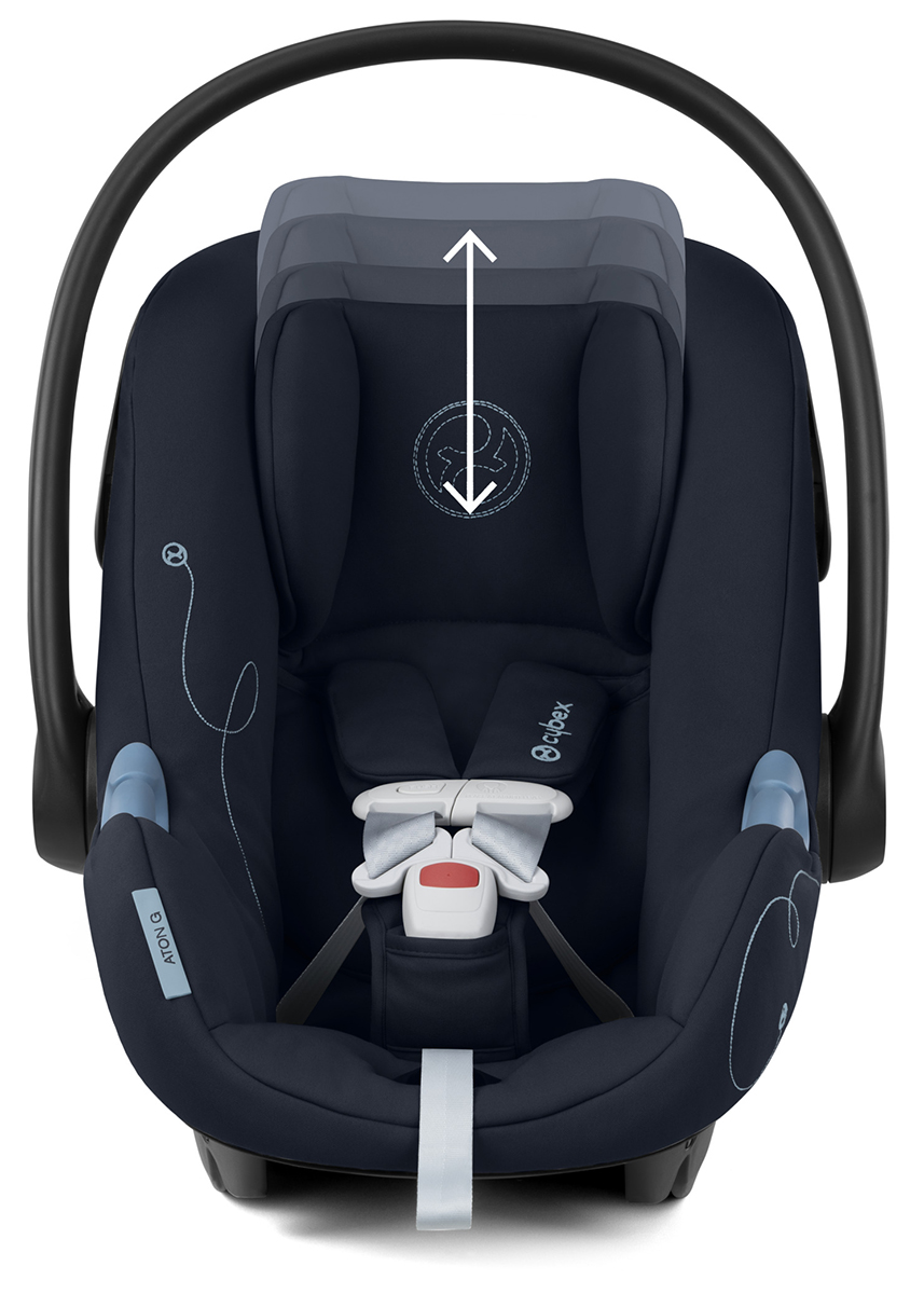 At 9 lbs., the CYBEX Aton G is one of the lightest infant car seats on the market. The Aton G takes safety and comfort seriously with the use of linear side-impact protection, which reduces collision forces in a side impact crash, in-shell air ventilation for natural airflow and a UPF50+ sun canopy. Additionally, the SAFELOCK belt tensioner provides a quick and easy installation. Features: 11-POSITION ADJUSTABLE HEADREST WITH NO-RETHREAD HARNESS: integrated harness adjusts with the headrest for a proper fit as your child grows; LINEAR SIDE IMPACT PROTECTION: integrated into the shell to effectively reduce collision forces on the child in a side impact crash; LIGHTWEIGHT CONVENIENCE: only 9 lbs.; IN-SHELL AIR VENTILATION: provides natural airflow to keep your child comfortable and cool in warmer temperatures; FLAME-RESISTANT FABRIC: passes federal safety standards without the use of added fire-retardant chemicals; XXL UPF50+ SUN CANOPY: protects your child from the sun and elements; EASY INSTALL: SAFELOCK belt tensioner offers quick, simple, and secure belt installation; TRAVEL SYSTEM COMPATIBLE: connects to all CYBEX strollers with included adapters to create a convenient travel system; ERGONOMIC RELEASE: one-handed base and stroller release at the back of the carrier shell; REMOVABLE NEWBORN INSERT: supports babies from 4 to 11 lbs.; EASY-IN BUCKLE: keeps the harness buckle pointing forwards, making it easier to sit your child in the seat and buckle them up; FAA COMPLIANT: allows for infant carrier use during air travel without base; EASY TO CLEAN: machine-washable fabrics; What's In The Box: The Cybex Aton G Infant Car Seat includes: Aton G Infant Car Seat; Infant Car Seat Base; Newborn Inlay; Sun Canopy; Specifications: DIMENSIONS: 26.1" L x 17.5" W x 14.7" H; WEIGHT: 9 lbs (without base); SUITABILITY: From 4 lbs. up to 35 lbs.; Up to 30";.