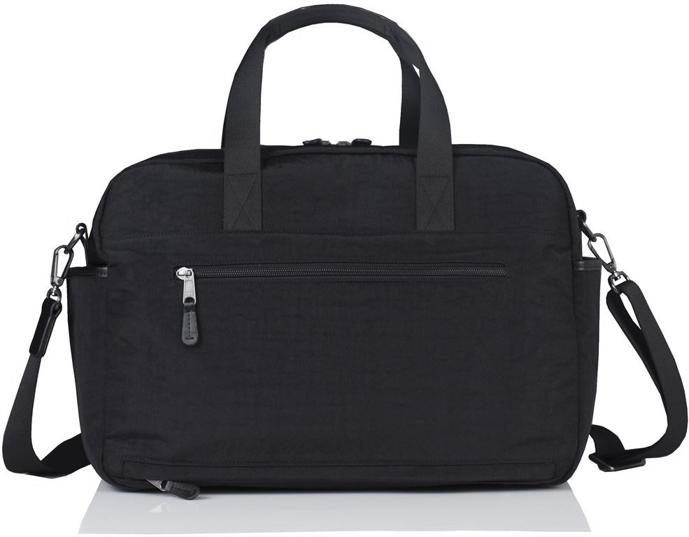A unisex tote designed for both moms and dads that are style conscious and frequently on-the-go. Our exclusive bottom hidden zipper pocket allows parents to quickly take care of dirty diapers and clothes, and the interior padded tech sleeve provides protection for all handheld gadgets. The tote can be worn over the shoulder or as an cross body with the adjustable long strap. Durable water-resistant coated crinkle nylon or brushed twill nylon with leather trim.; Handheld leather trim straps and detachable crossbody strap.; Five exterior pockets including two insulated side bottle pockets.; Five interior insulated side bottle pockets including a padded tech sleeve for handheld gadgets.; Hidden zipper pocket on bottom of back side for extra storage.; Interior lining is coated with PVC-free, water-resistant coating.; Logo lining changing pad included.; Free of harsh chemicals such as BPA, PVC and Phthalates.; Measurements: 16.25?(L) x 11.75?(H) x 5.5?(D); Top handle strap drop: 5.25"; Shoulder strap maximum length: 24?;.