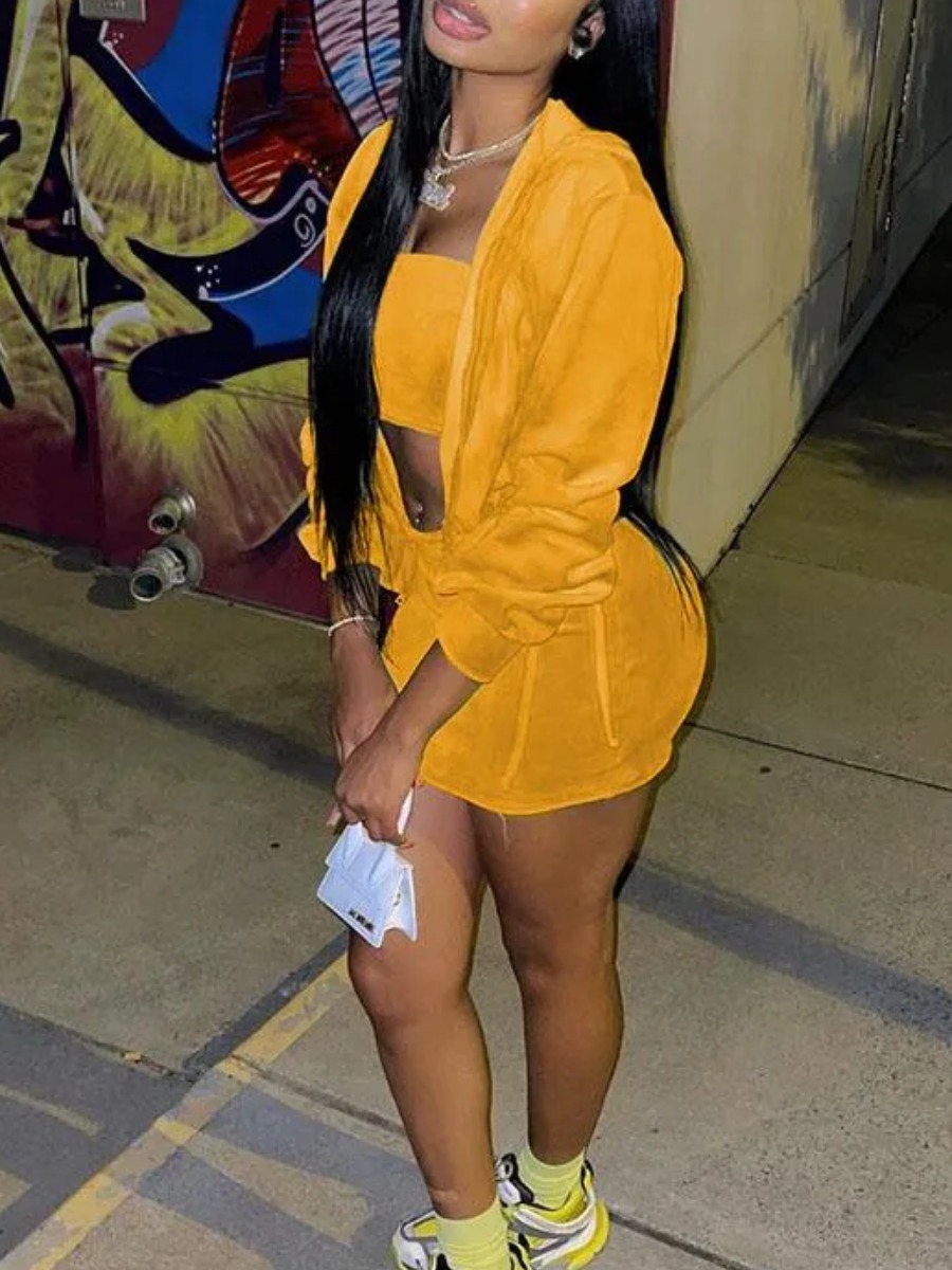 LW BASICS Casual Polyester Hooded Collar Solid Color Long Sleeve Two-piece Skirt Set.