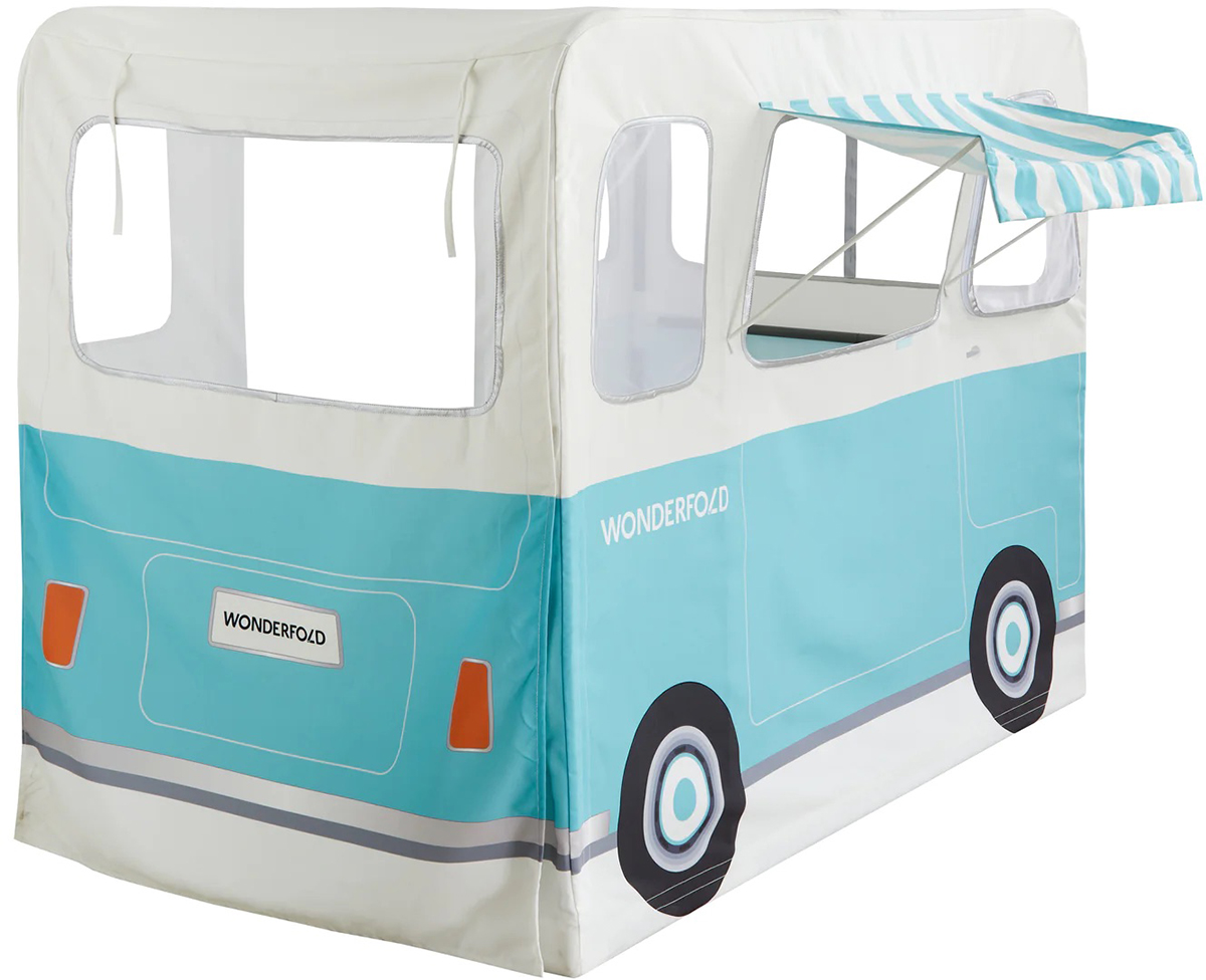 Unleash the spirit of adventure with our large-sized play tent, the Adventure Camper! Inspired by whimsical vintage buses, this kids' tent is more than a play space it can also serve as a stroller wagon garage, accommodating up to a W4 Stroller Wagon! Features Vintage Whimsy: Immerse your kids in the playful charm of vintage buses, turning playtime into a nostalgic journey full of imagination.; Spacious Play Area: Generous dimensions provide ample room for kids to play, explore, and even create a cozy reading nook.; Versatile Usage: Seamlessly adapt between playtime adventures, a protective garage, and a cozy reading nook.; Roll Up Door: Roll it up and tie it away for seamless play.; Zippered Windows: Open and close the windows with zippers, allowing for a customizable play experience.; Window with Canopy: Transform your tent into a food truck with the optional canopy window.; Durability: Crafted with poly canvas and a sturdy metal frame.; Easy Assembly: This play tent is simple to assemble and requires no tools.; Safety Always supervise children during playtime in the playtent to ensure a safe experience.; Keep sharp objects away from the play area to avoid puncturing or damaging the tent fabric.; Follow the manufacturer's assembly instructions to ensure the tent is set up securely.; Material & Care Crafted with poly canvas and a sturdy metal frame.; To clean Spot clean with mild soap and warm water solution.; Rinse and wipe with a dry cloth until fully dry.; ;.