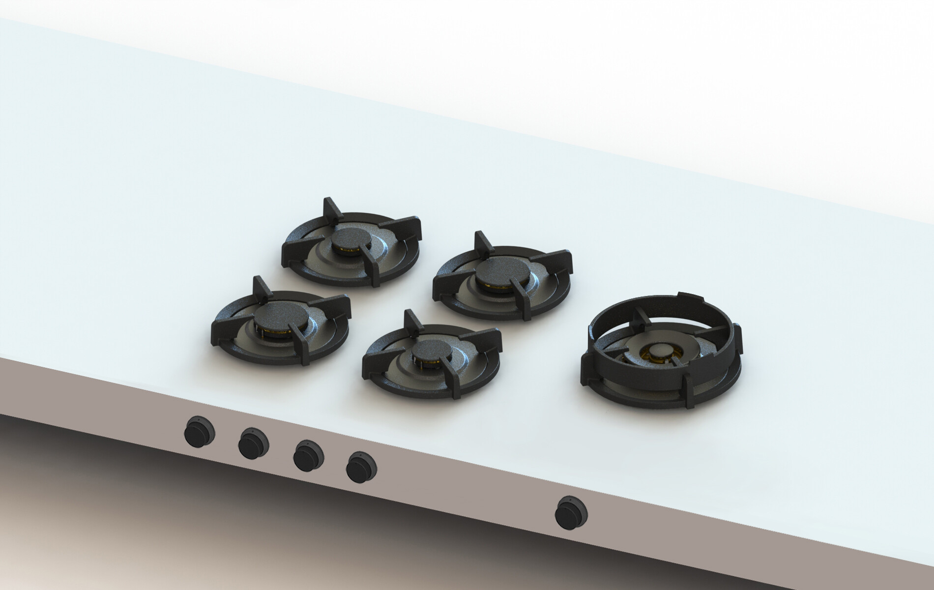 Modular Gas Cooktop with 5 Burners, Automatic Spark Ignition, Double-Enamel Cast Iron Pan Supports, Controlled Power, Durable, Easy-to-Clean, Safety Shut-Off Control and Handmade in Holland: Brass / Front Knobs / Natural Gas. With a multifunctional burner designed for both low and high powered cooking, you can quickly and easily switch between frying, simmering or roasting. There is always sufficient space for your pans. The different parts of the burner can be separated and cleaned. No raised corners, just a flat countertop to clean. The possibility to create your ideal cooking set-up that fits the available space in your kitchen and your personal cooking style. PITT Cooking America will work with any countertop besides wood. This Dutch innovation has passed a long and solid test phase, with very positive results. During use, the temperature of the countertop will remain low and there will be a minimal transfer of heat. Utilizes a pilot-thermocouple 100% safety shutoff. Each individual cooking system is being hand-assembled in a production hall in a small village, close to Utrecht. No machine involved. More space for larger pots. Powerful burners. 5-year full warranty. Burners: 4. 2x: 1024 - 6142 BTU. 2x: 1024 - 10236 BTU. 1x: 682 - 17061 BTU. The controls: Front Side. Module dimensions (LxBxH): 19 13/19" x 33 9/16" x 3 1/2". Minimum Countertop Depth: 23 5/8". Minimum Cabinet Width: 35 7/16". Countertop Thickness: 5/32 - 1 3/8". Minimum C-measurement: 1 31/32". Support bar needed: Yes. Automatic spark ignition: Yes. Flame protection: Yes. Weight: 65 lbs. Shipping Weight: 82.67 lbs. Wok ring: Yes.