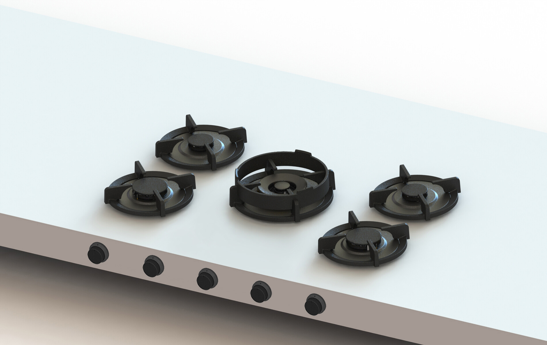 Modular Gas Cooktop with 5 Burners, Automatic Spark Ignition, Double-Enamel Cast Iron Pan Supports, Controlled Power, Durable, Easy-to-Clean, Safety Shut-Off Control and Handmade in Holland: Black / Front Knobs / Liquid Propane. With a multifunctional burner designed for both low and high powered cooking, you can quickly and easily switch between frying, simmering or roasting. There is always sufficient space for your pans. The different parts of the burner can be separated and cleaned. No raised corners, just a flat countertop to clean. The possibility to create your ideal cooking set-up that fits the available space in your kitchen and your personal cooking style. PITT Cooking America will work with any countertop besides wood. This Dutch innovation has passed a long and solid test phase, with very positive results. During use, the temperature of the countertop will remain low and there will be a minimal transfer of heat. Utilizes a pilot-thermocouple 100% safety shutoff. Each individual cooking system is being hand-assembled in a production hall in a small village, close to Utrecht. No machine involved. More space for larger pots. Powerful burners. 5-year full warranty. Burners: 5. 2x: 1024 - 6142 BTU. 2x: 1024 - 10236 BTU. 1x: 682 - 17061 BTU. The controls: Front Side. Module dimensions (LxBxH): 19 13/19" x 33 9/16" x 3 1/2". Minimum Countertop Depth: 23 5/8". Minimum Cabinet Width: 35 7/16". Countertop Thickness: 5/32 - 1 3/8". Minimum C-measurement: 1 31/32". Support bar needed: Yes. Automatic spark ignition: Yes. Flame protection: Yes. Weight: 65 lbs. Shipping Weight: 82.67 lbs. Wok ring: Yes.