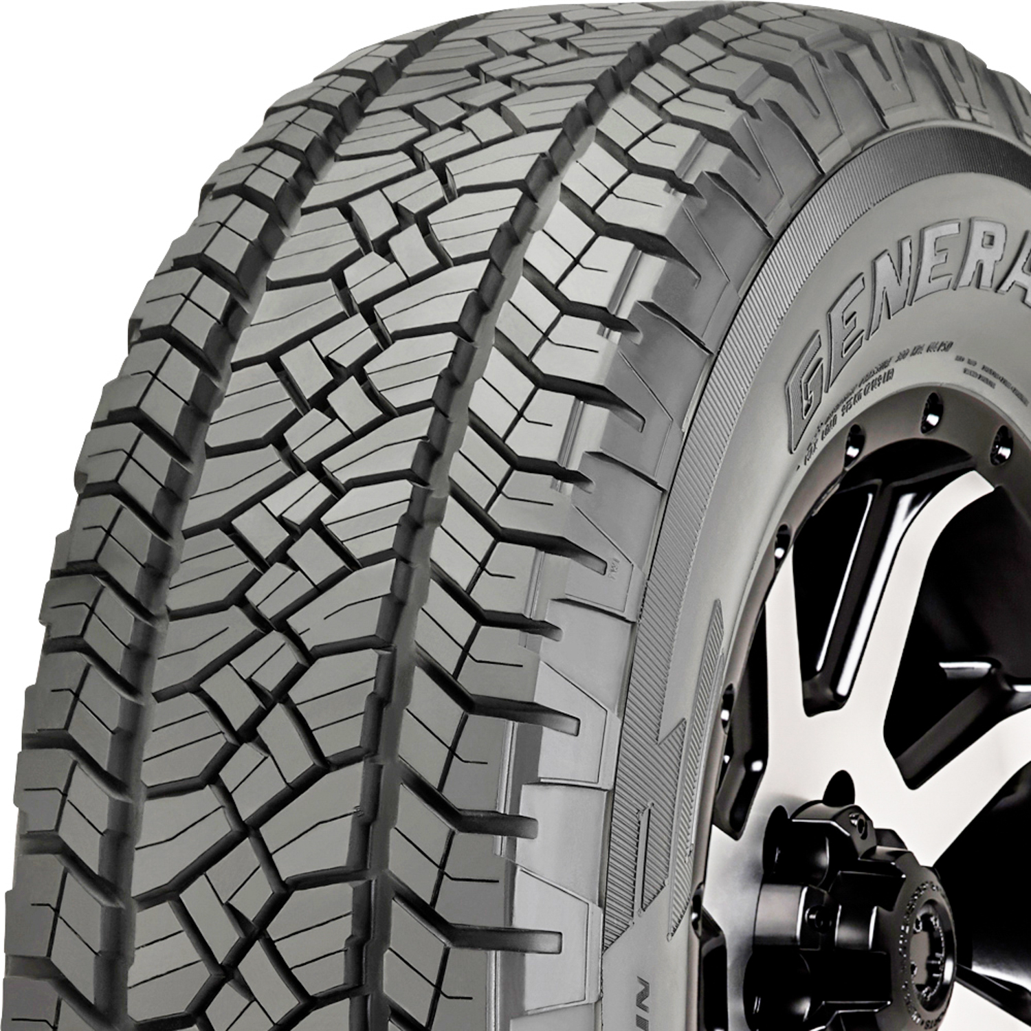 General Grabber APT. FEATURES AND BENEFITS: All weather traction; All terrain traction; Enhanced durability; Comfortable on-road drive; . OVERVIEW: The General Grabber APT is an all terrain, all weather tire manufactured for SUVs and light trucks. General offers a 60,000 mile treadwear warranty with this model.The tire ensures excellent all weather traction. The tread design and the Duragen compound work together to promote a safer dry, wet, and winter-weather road grip. The tread design finds a firm grip throughout the year, while the Duragen compound maintains its flexibility even in colder temperatures. As a result, the tire has received its three mountain peak and snowflake symbol, which indicates its capability to perform well in winter-weather conditions. The treads wide grooves prevent hydroplaning by dispersing water and slush from below the tires footprint.The models durable compound and optimal tread design enable it to perform well both on- and off-road. The tread design manages to find grip and traction on soft, loose, and uneven terrains. The tread elements ensure excellent performance off-road. The staggered tread elements and the wide grooves work together to boost off-road driving safety, maintaining a clean footprint. They eliminate snow and mud and eject rocks stuck between the tread elements, effectively preventing stone retention as well. The compound is resistant to chipping and cuts that may harm the tires casing, ensuring a safer off-road drive.This model offers excellent durability. Its internal structure maintains the optimal tire shape under the driving and load pressure. This enhances its capability to withstand and carry heavy loads with ease. On the other hand, the special StabiliTread technology widens the tires footprint and lengthens its service life. It evenly distributes the forces of acceleration, cornering, and braking to prevent irregular tread wear formations across the tread area. Better durability and longer-lasting tread wear to improve the durable performance and usability.The Grabber APT guarantees a comfortable on-road performance. When driving on-road, the Comfort Balance technology lowers the road vibrations felt in the vehicles cabin. This is ensured with the absorption layer located under the tread, which isolates the vehicle from road disturbances. The reduced road vibrations ensure an enjoyable driving experience.All weather tires receive the three mountain peak and snowflake (3PMS) symbol for their exceptional winter weather performance. They are all season tires with extra winter weather grip, in order to guarantee safer year-round durability. This ensures their true and secure driving ability throughout the year. Manufacturers recommend changing tires every 10 years. As long as tires are properly stored before they are sold, the year of their manufacture will not shorten their service life.