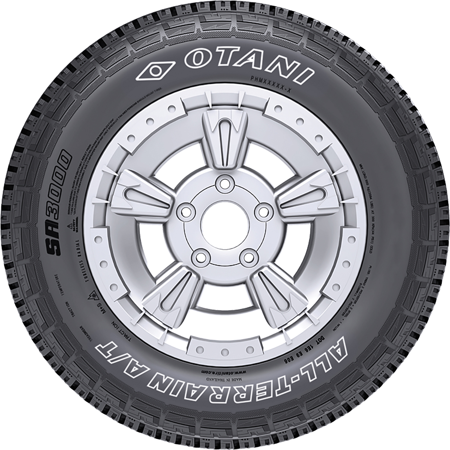 Otani SA3000. FEATURES AND BENEFITS: All terrain performance; All season traction; Improved driving durability; Longer-lasting tread life; . OVERVIEW: The Otani SA3000 is an all terrain, all season tire made for SUVs.The aggressive tread design and its strong rubber compound improve traction on all terrain surfaces. The large tread elements increase traction on soft, loose, and uneven terrains. It firmly grips the surface, which keeps forward motion. These elements improve on- and off-road performance. At the same time, the self-cleaning tread disperses mud, snow, and rocks stuck between the tread elements, which increases surface contact. This continuous surface contact boosts the steering response time and accuracy to the driver's commands, while the structure is stabilized against driving pressure.The model promotes excellent performance throughout the year. The ideal tread design maintains the road and terrain contact throughout the year, while the all season compound keeps the rubber flexible in changing temperatures. They increase the road grip in dry, wet, and winter-weather conditions. Also, wide grooves along the tread area disperse water and slush from the footprint, in order to resist hydroplaning.The tire also boosts its service life and usability. The ideal tread pattern evenly distributes the driving pressure along the tread area, which ensures even wear. The wear-resistant compound significantly decreases the model's treadwear rate. Their combination prevents irregular and premature wear formations across the footprint, significantly upgrading the tire's tread life.The Otani SA3000 utilizes a strengthened internal structure and rubber compound blend. This boosts the model's overall driving durability and damage resistance. This structure maintains the optimal tire shape under the driving pressure affecting it, upgrading its load capacity. The model's special silica compound resists external damage. It prevents punctures, cuts, and tearing from harming the tire's tread area and casing. These elements enhance driving safety levels during its on- and off-road ride. Manufacturers recommend changing tires every 10 years. As long as tires are properly stored before they are sold, the year of their manufacture will not shorten their service life.