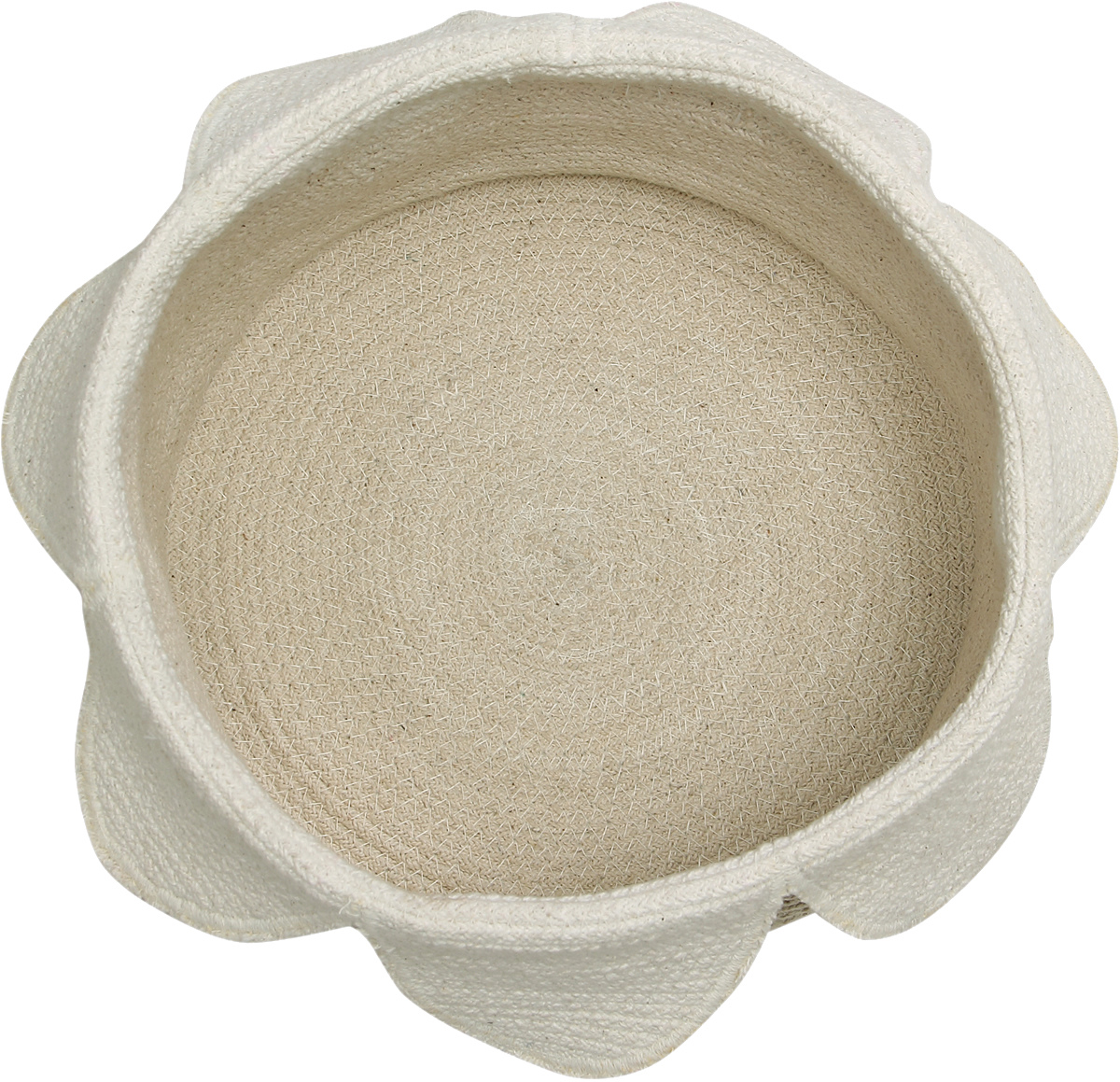 This cotton basket with irregular petals around it is inspired in the classics English Gardens. Every petal has been carefully perfected with scissors, so every handmade basket result as a unique piece. We find in this floral basket the perfect deco home accessory to store any type of object or as a regular plant pot. Handmade: carefully and individually handmade by our artisans.; Eco-friendly: 100% natural cotton and non-toxic dyes.; Easy to match: you can match it with with our rugs, cushions or blankets.; Machine-washable: easy to wash, it can be washed at home in a conventional washing machine.; Composition 100% Natural Cotton.; Quality It is a handmade product, taking care of every detail.; Every basket is unique and different.; There may be minor variations in color and shape.; This product meets all the quality and safety standards for children.; The product has the ISO 9001, ISO 14001 and ISO 18001 certificates.; Environmentally responsible: non toxic or polluting dyes have been used.; Extensive quality controls to check for needles and other metals have been applied.; Made in India.;.