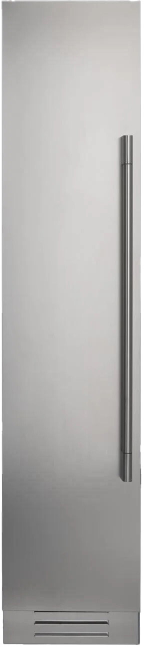 Freezer Column with 8.22 cu. ft. Capacity, Deep-Freezing, Total No Frost, LED Lighting, Integrated Installation, Holiday Mode, Ice Maker, Sabbath Mode, and Height Adjustable Glass Shelves: Left Hinge. It offers versatile storage with 2 height-adjustable shelves, plus the top of the ice maker acting as another shelf. 2 drawers and 2 height-adjustable door bins complete the picture. Automated defrosting of the evaporator ensures food always stays fresh. Multilevel LED lighting increases visibility so you can quickly find what you're looking for. 100 opening flush hinge, allowing truly integrated installation. Located in the upper section, the ice maker uses purified water from the integrated filtering system to produce up to 2.2 lbs of your desired-sized cube. Deep-Freezing. Holiday Mode. Sabbath Mode. Height Adjustable Glass Shelves. Professional Handle Kit Included. Stainless Steel Exterior. Metal Freezer Bins on Stainless Steel Glides. Icemaker with Ice Tray. Luminous White Interior. Finish: Stainless Steel Exterior. Annual Energy Usage: 480 kWh/yr. Interior capacity (cu. ft.): 8.22. Professional handle kit: Yes. Shelves: 2. Adjustable Door Shelves: 2. Freezer Drawers: 2. LED lighting: Yes. Ice Maker: Yes. Ice Maker production capacity: 2.2 lbs / 24 hrs. No Frost: Yes. Width: 18". Height: 83 1/2". Depth without handle: 25". Minimum niche height: 84 1/2". Door clearance: 40 1/2". Door opening angle: 100. Net Weight: 289 lbs. Volt: 115 V. Amps: 2.4 A. Frequency: 60 Hz. Watts: 327 W. Power Cable: Nema 5-15P.
